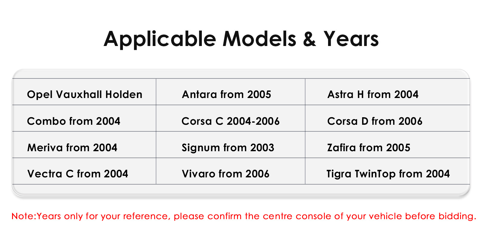 | Año del modelo de automóvil aplicable | Año del modelo de automóvil aplicable |
