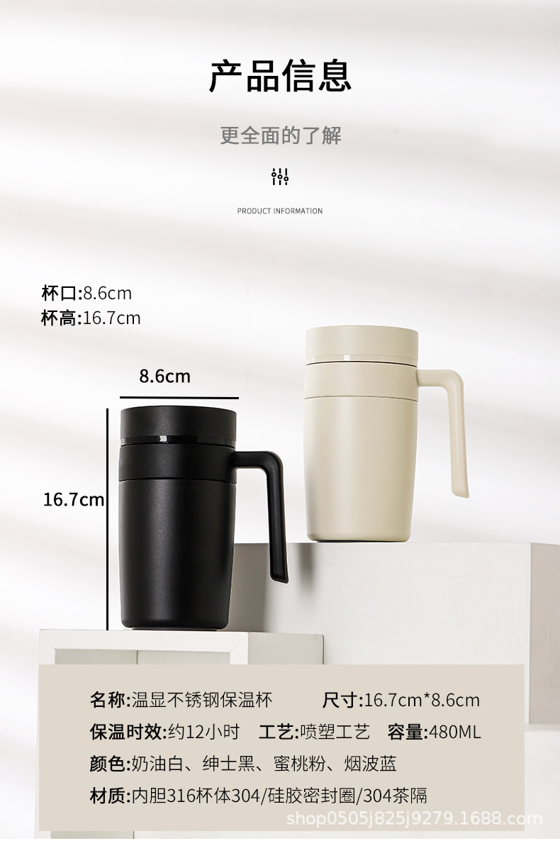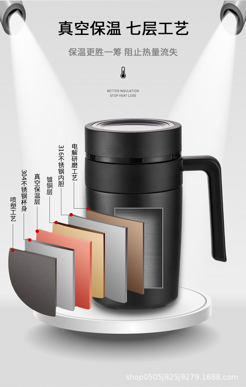 Inteligente 316 de acero inoxidable ventosa control temperatura del negocio taza separación té Oficina esmerilado con mango regalo