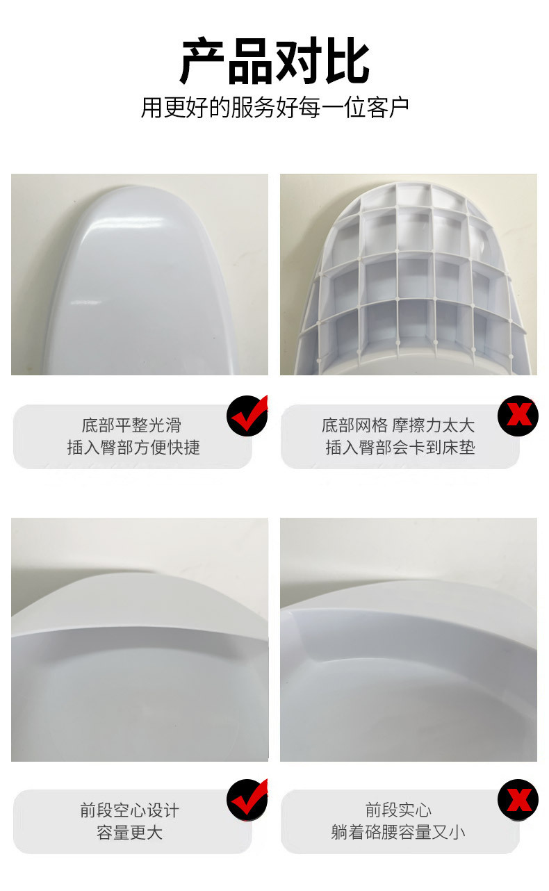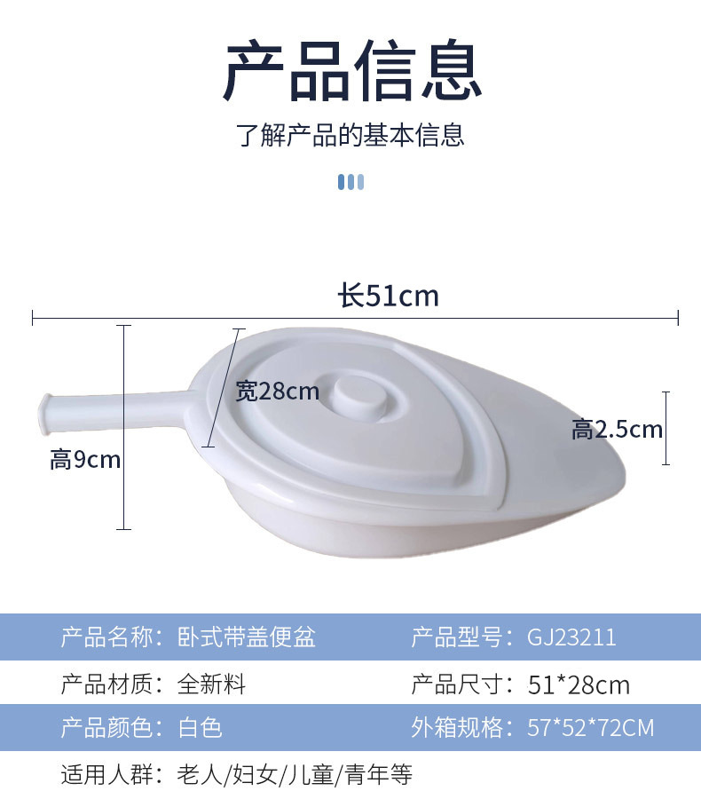 Orinal de plástico blanco horizontal con tapa orinal conveniente para los ancianos con mango engrosado suave orinal de pico de pato