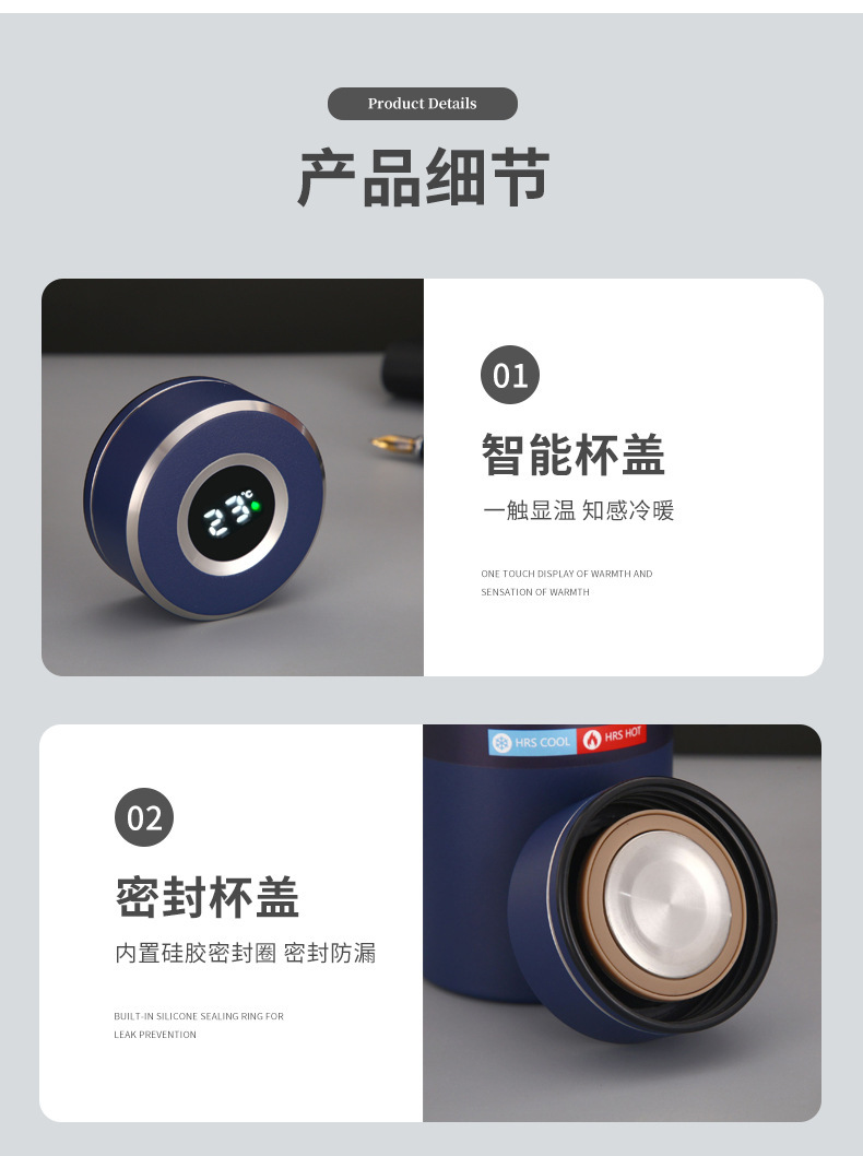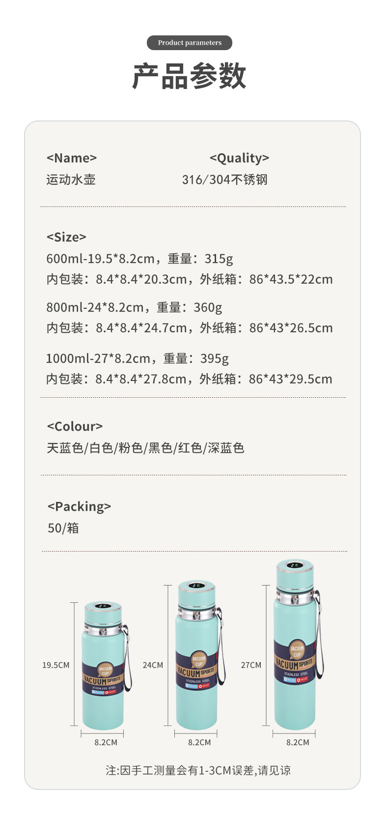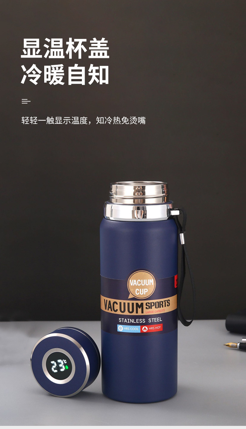Pantalla de temperatura de gran capacidad cuerda de acero inoxidable termo de vacío taza hombres y mujeres portátil deportes al aire libre taza de agua olla de viaje al por mayor