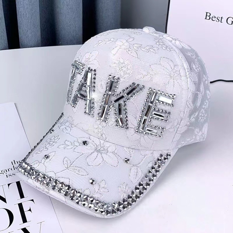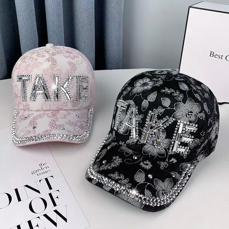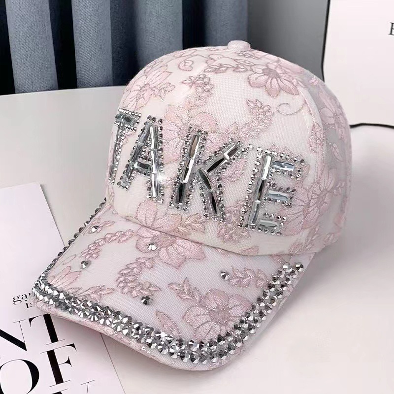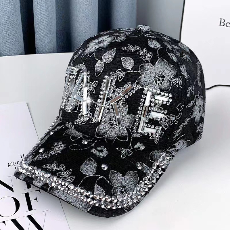 De las mujeres de estilo coreano hecho a mano de diamante incrustado moda rhinestone carta transpirable gorra de béisbol casual protección solar gorra enarbolada