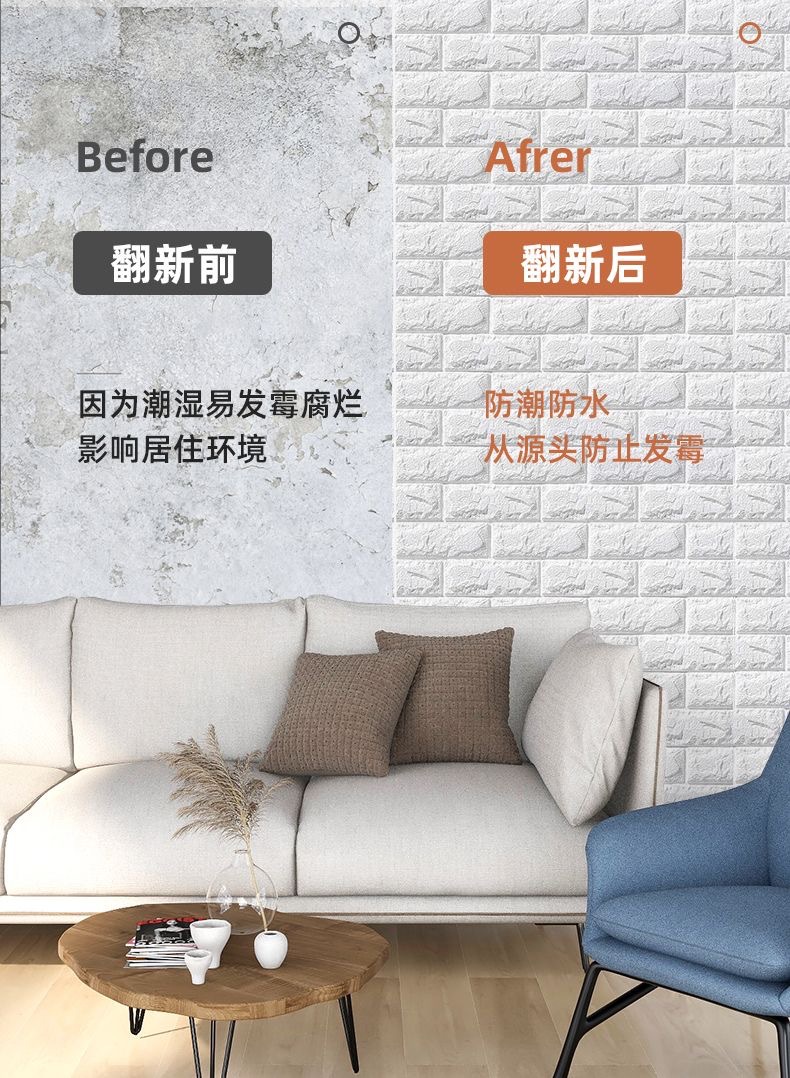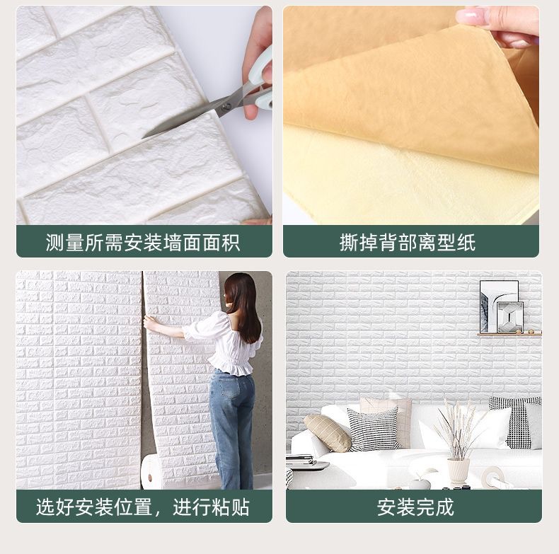 Rollo completo de papel tapiz autoadhesivo para apartamentos de alquiler, pegatinas impermeables de paquete suave anticolisión para dormitorio estéreo 3D para decoración de sala de estar
