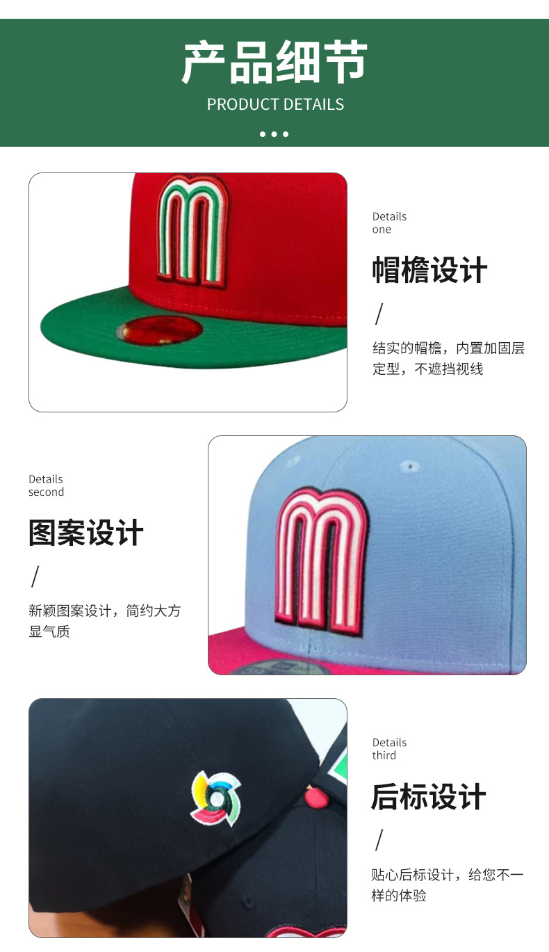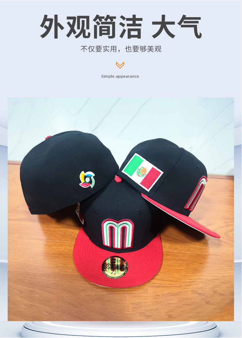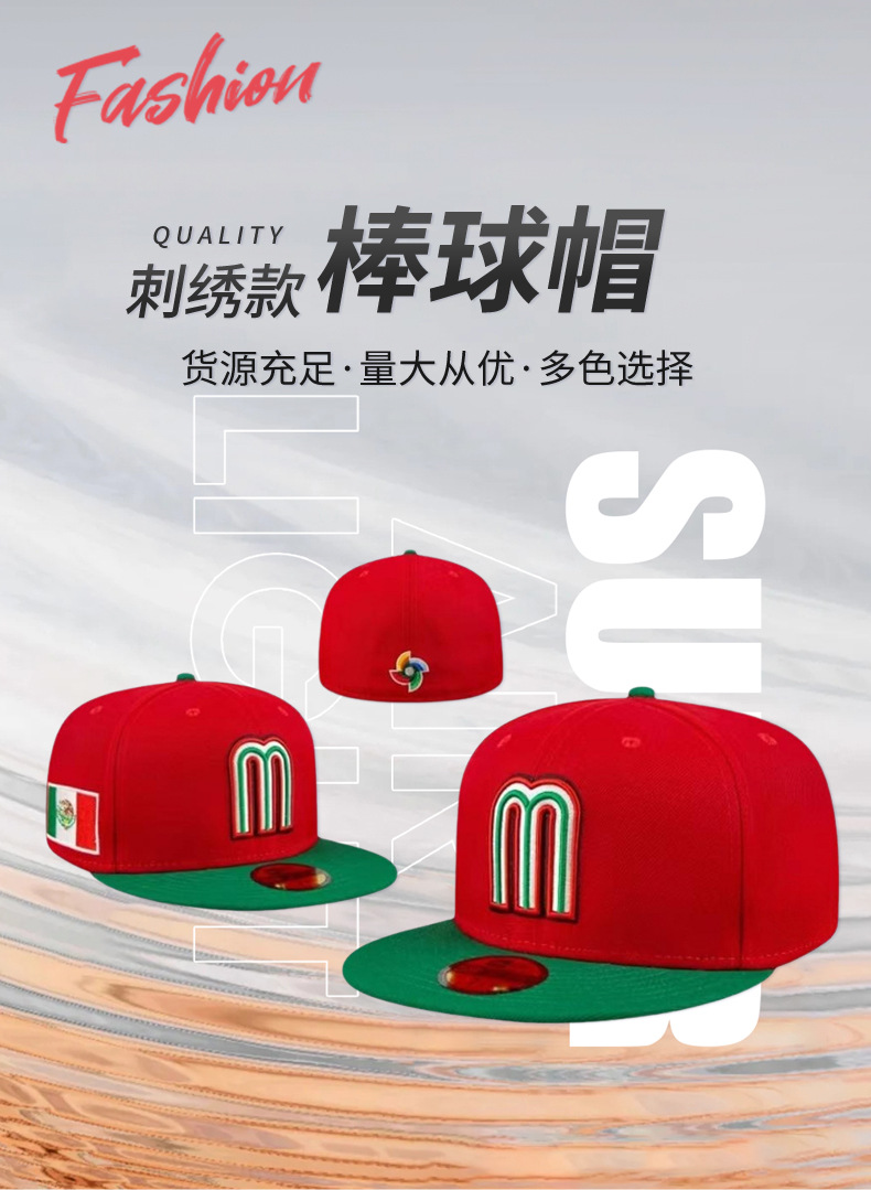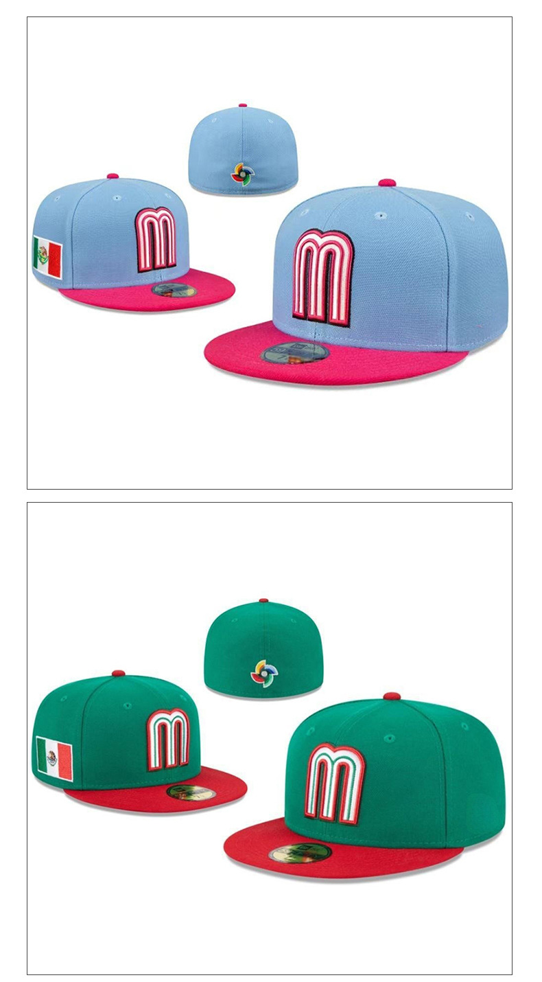 Suministro directo de fábrica Equipo nacional mexicano Bordado de viento logotipo de coche gorra de béisbol letra mMéxico estilo mexicano