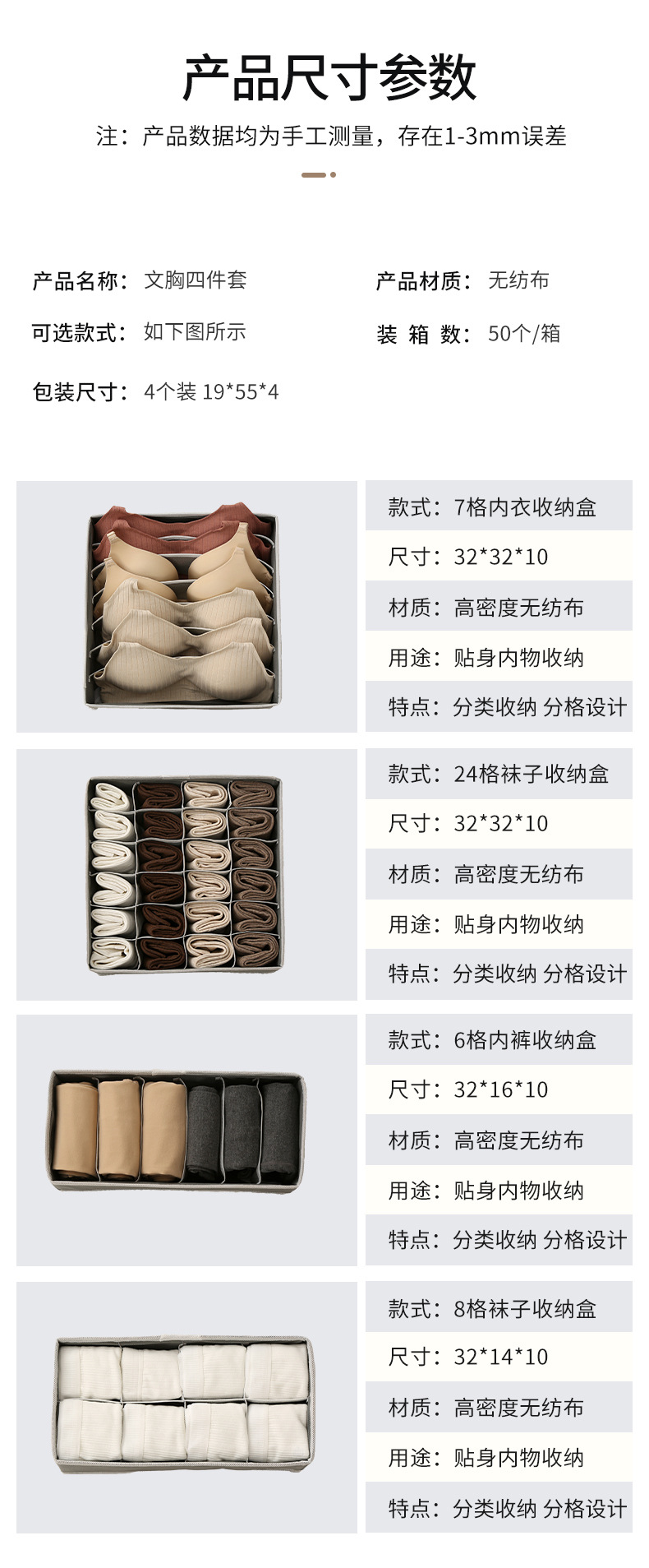 Caja de almacenamiento de ropa interior CH conjunto de cuatro piezas hogar cajón calcetines sujetador organizador caja engrosada tela de almacenamiento de ropa interior