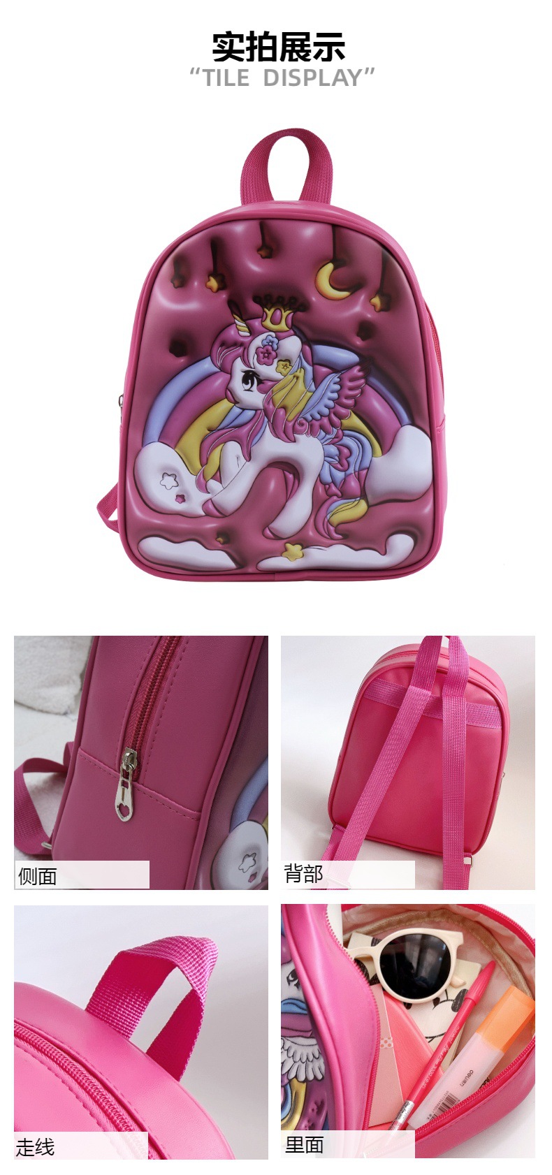 Mochila para niños 2023 nueva impresión digital 3D unicornio mochila kindergarten niñas de dibujos animados mochila al por mayor