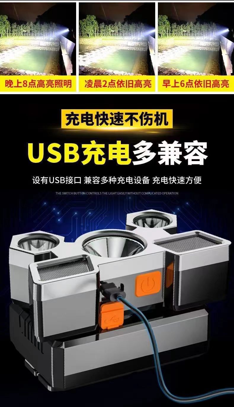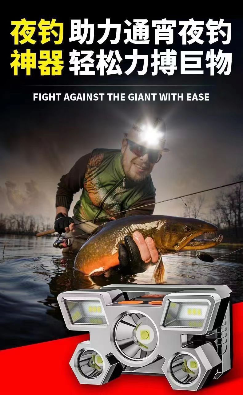 Lámpara de pesca nocturna al aire libre Lámpara de pesca especial de alta luz Lámpara de pesca de larga duración Lámpara de mina de carga de litio doble