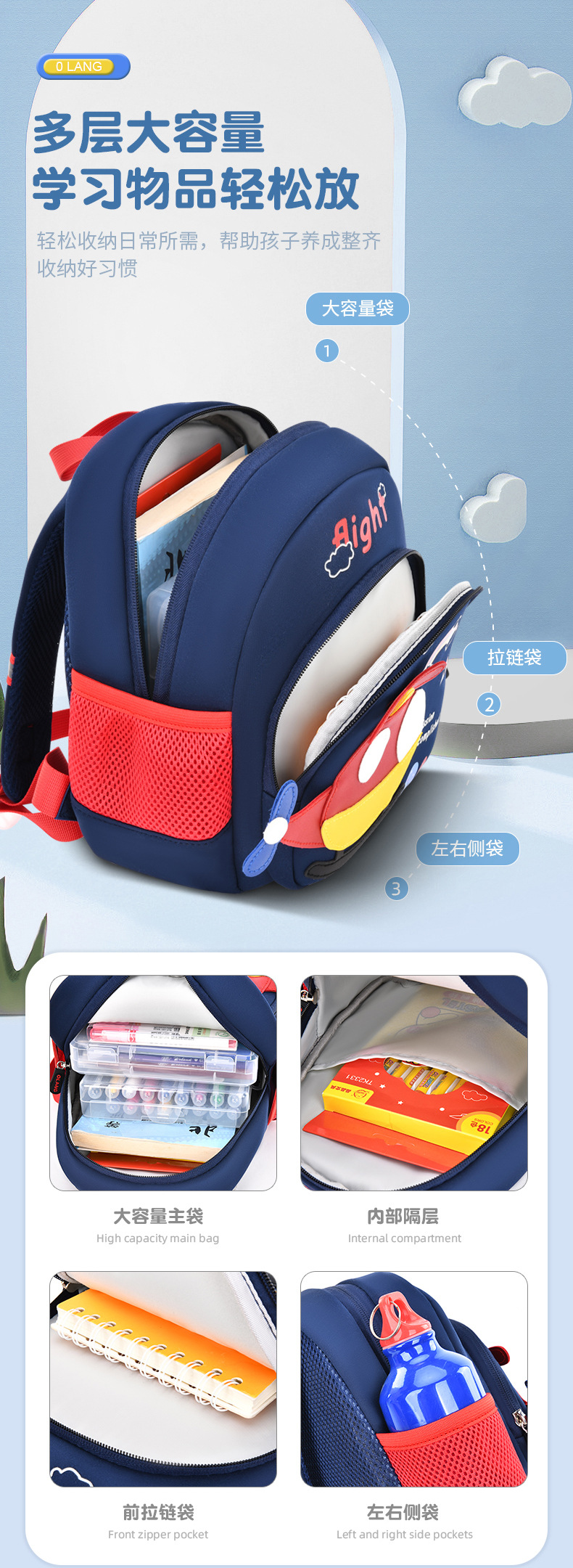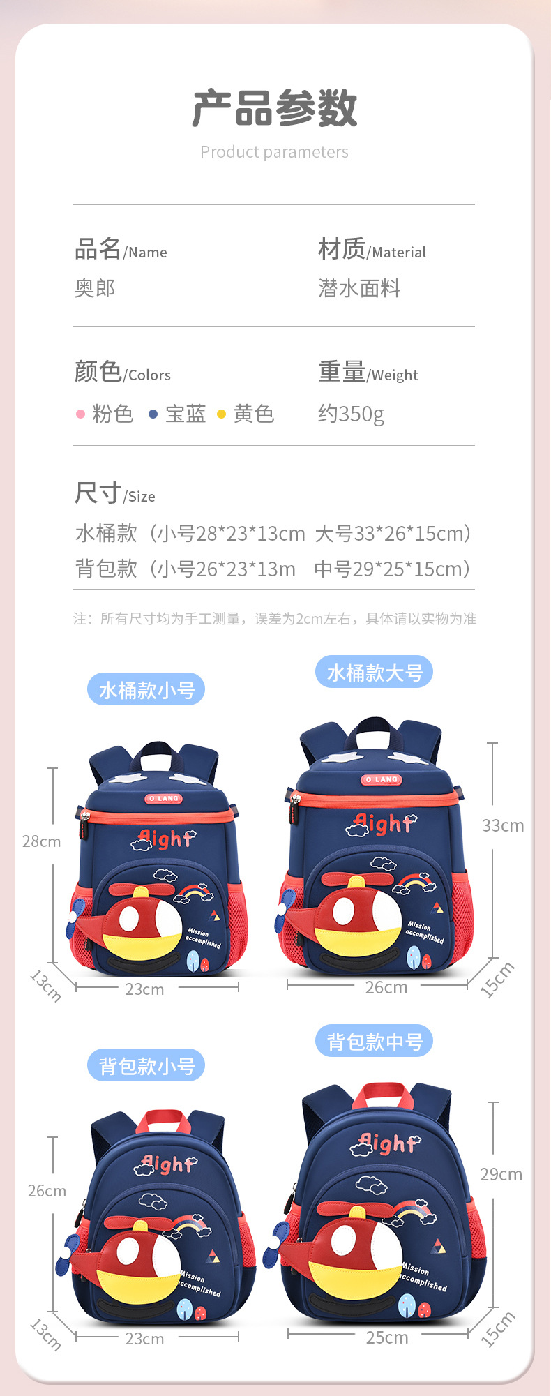 Nuevo Avión de dibujos animados kindergarten schoolbag bebé niño niña mochila imprimible anti-perdida mochila para niños
