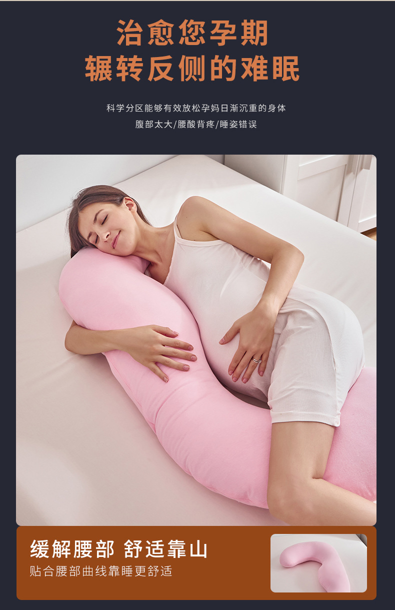 Amazon Pink J-tipo almohada de maternidad mujeres embarazadas almohada de la pierna almohada unilateral almohada cintura fábrica al por mayor