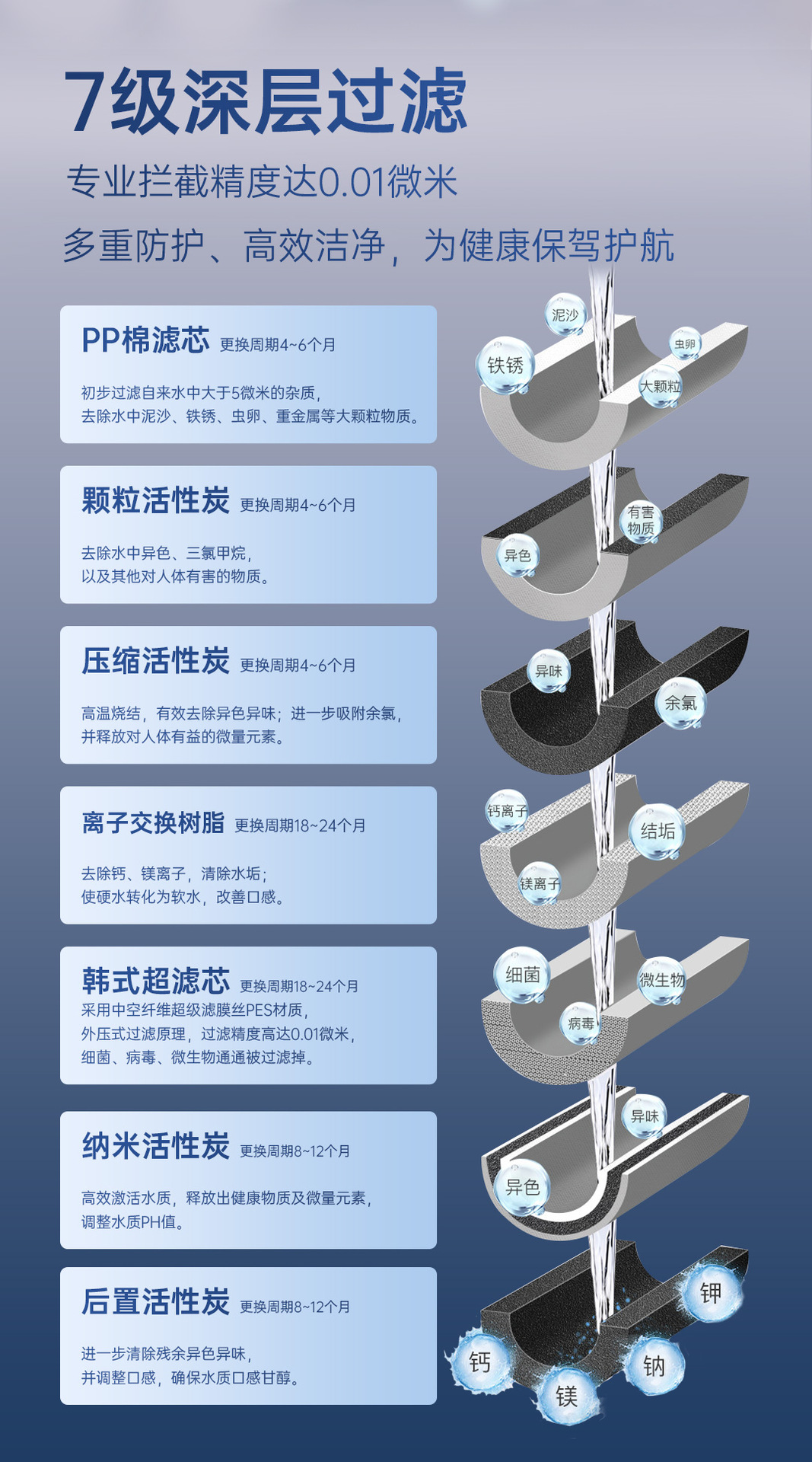 Purificador de agua de ultrafiltración de 7 niveles