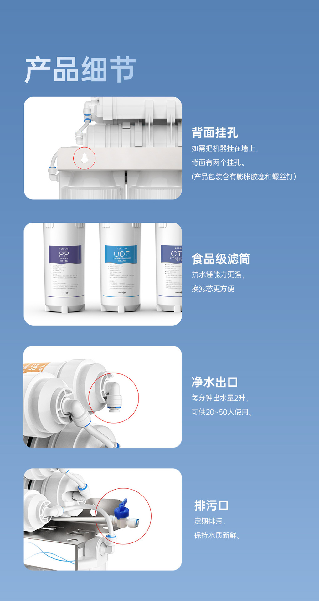 Teqiyuan hogar purificador de agua de ultrafiltración hogar Filtro frontal de la bebida directa purificador de agua del grifo del hogar