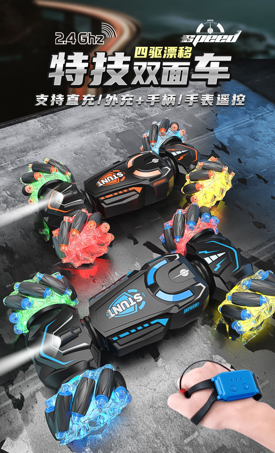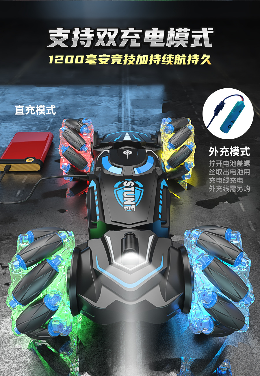 2,4g truco de carga de doble cara coche RC gesto de control remoto coche de carga externa de sonido y la luz se puede cerrar regalo para niños coche de juguete