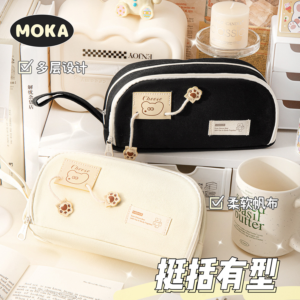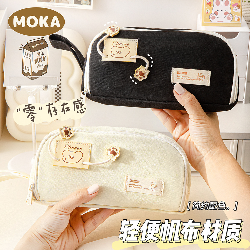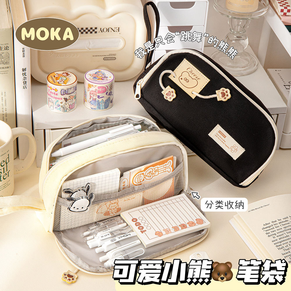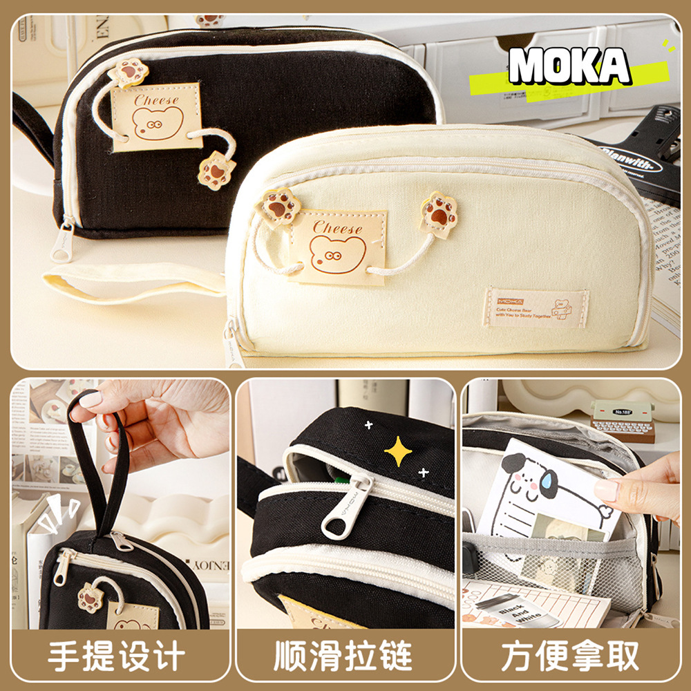 MOKA baile oso lápiz caso Mango de gran capacidad lápiz caso ins estilo simple dibujos animados manejar lienzo papelería bolsa caja