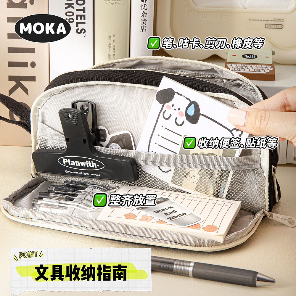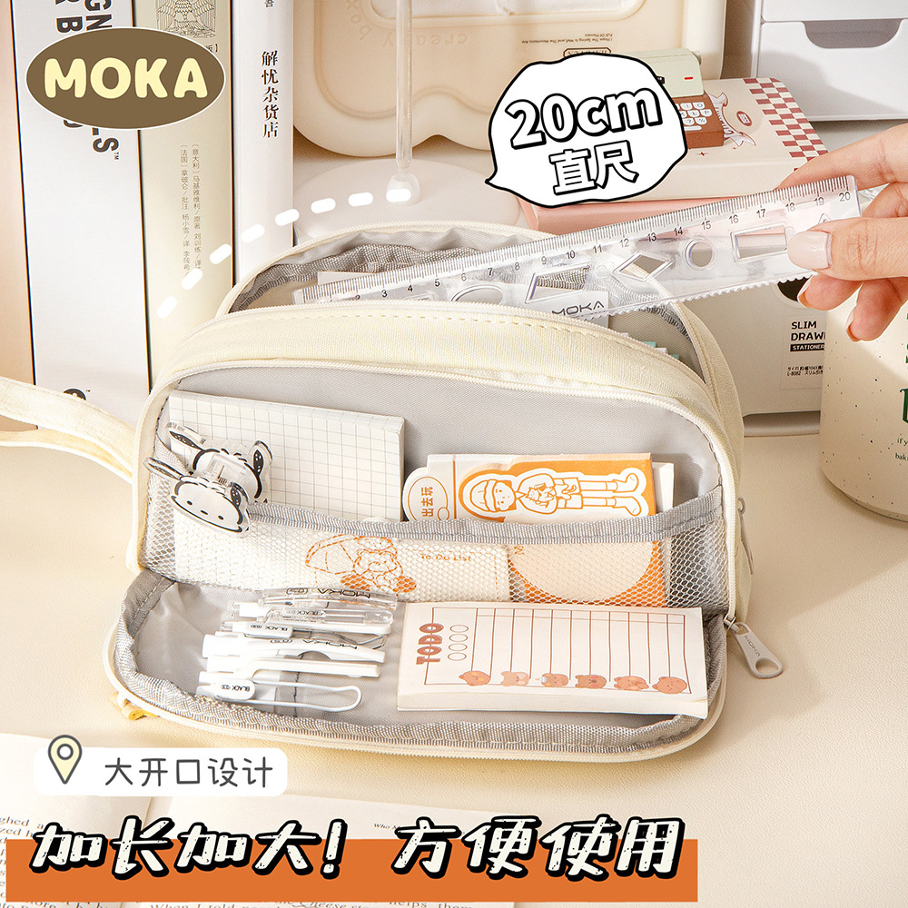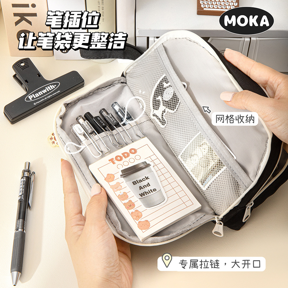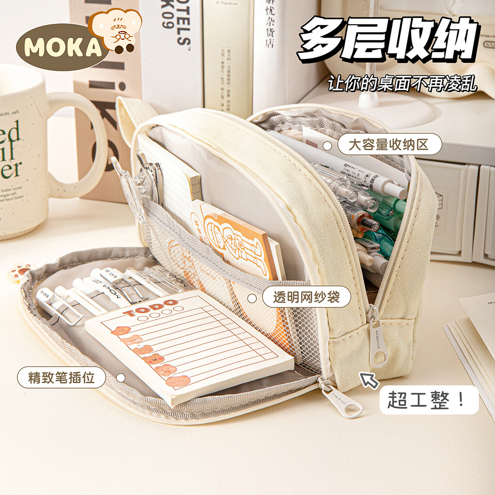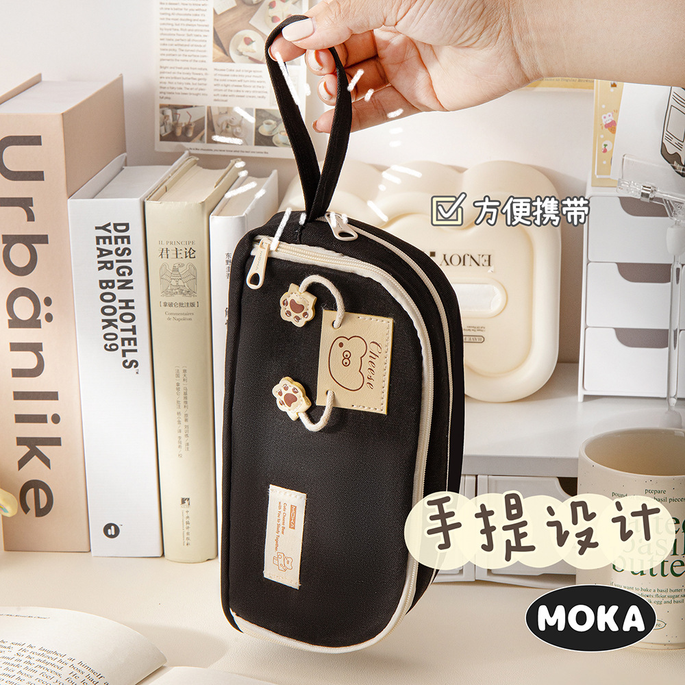 MOKA baile oso lápiz caso Mango de gran capacidad lápiz caso ins estilo simple dibujos animados manejar lienzo papelería bolsa caja