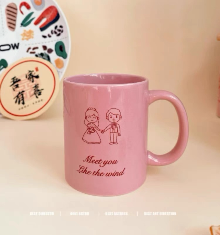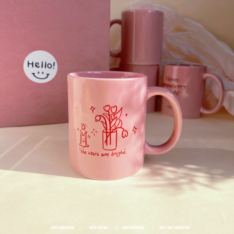 Original rosa de alto aspecto taza desayuno leche taza de café regalo de boda taza de agua de cerámica patrón impreso
