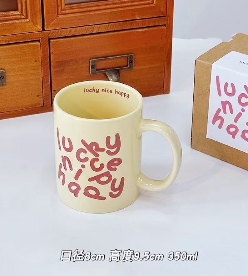 | Colores | Estilo 1 (El amor nunca falla),Estilo 2 (inglés),Estilo 3 [SUERTE rosa],Estilo 6 [SUERTE Beige],Estilo 4 (copa cereza rosa),Estilo 5 (copa cereza beige),patrón personalizado,Tazas en blanco sin impresión (pedido mínimo 50) |