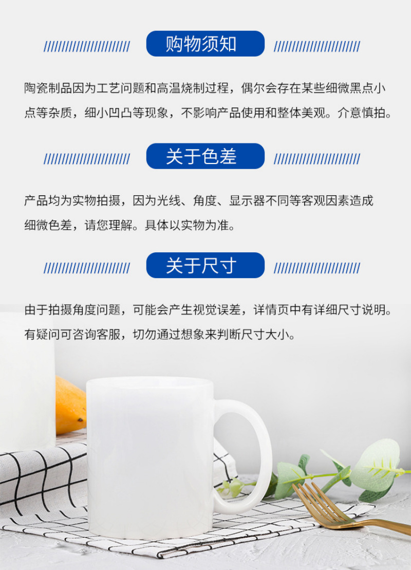 Taza de cerámica de sublimación de 11oz Taza en blanco de transferencia de calor Taza simple Taza publicitaria Taza de regalo Impresión de imagen LOGO