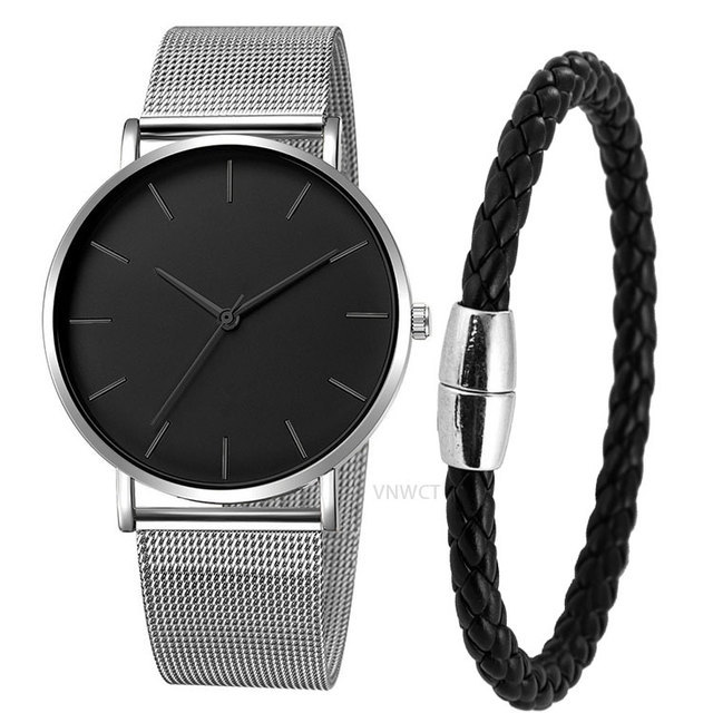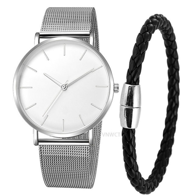 Reloj de moda de comercio exterior simple ultra-Delgado reloj de correa de acero de aleación reloj de hombre/reloj de pulsera de mujer traje de entrega de una pieza