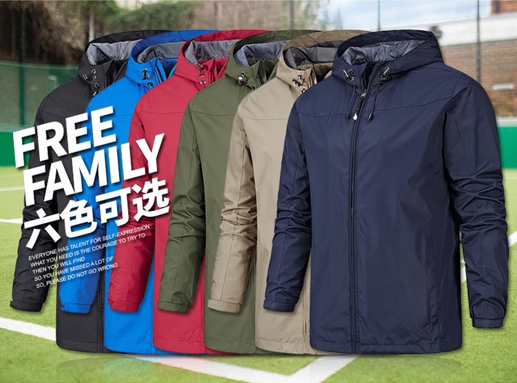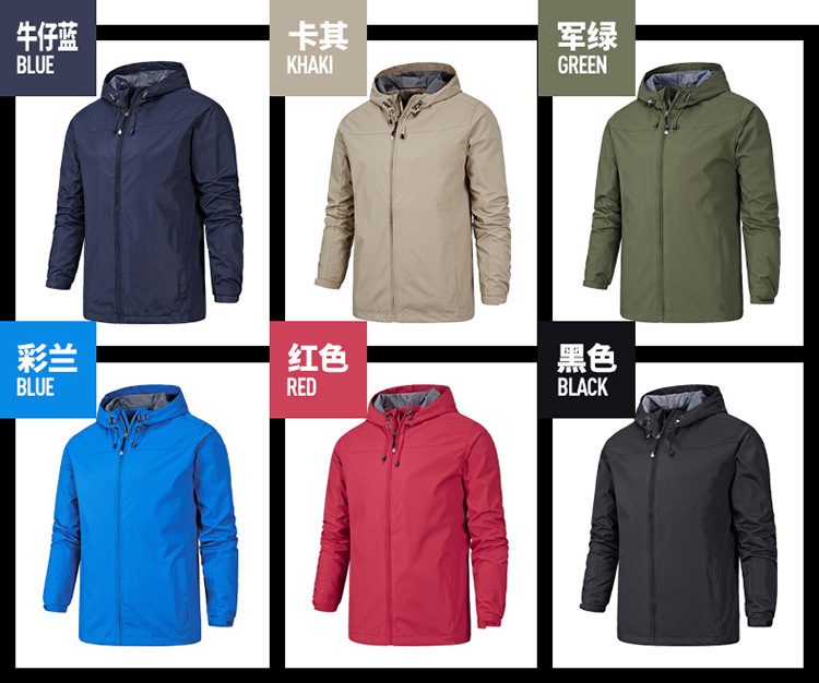 Color sólido al aire libre chaqueta impermeable a prueba de viento los hombres con capucha Capa delgada grupo comprar ropa + Logo