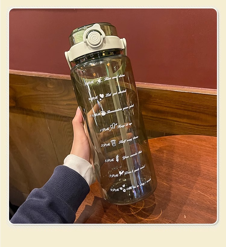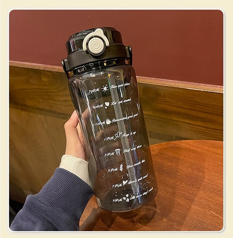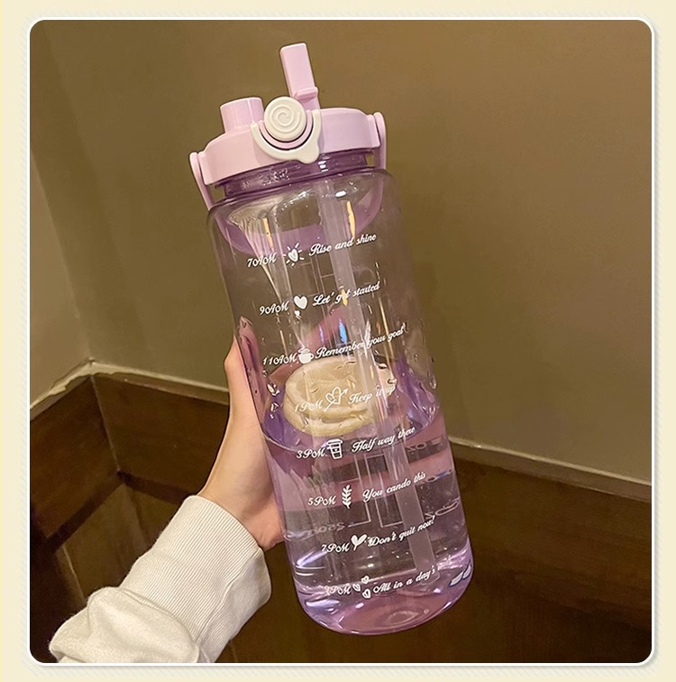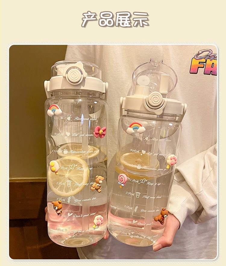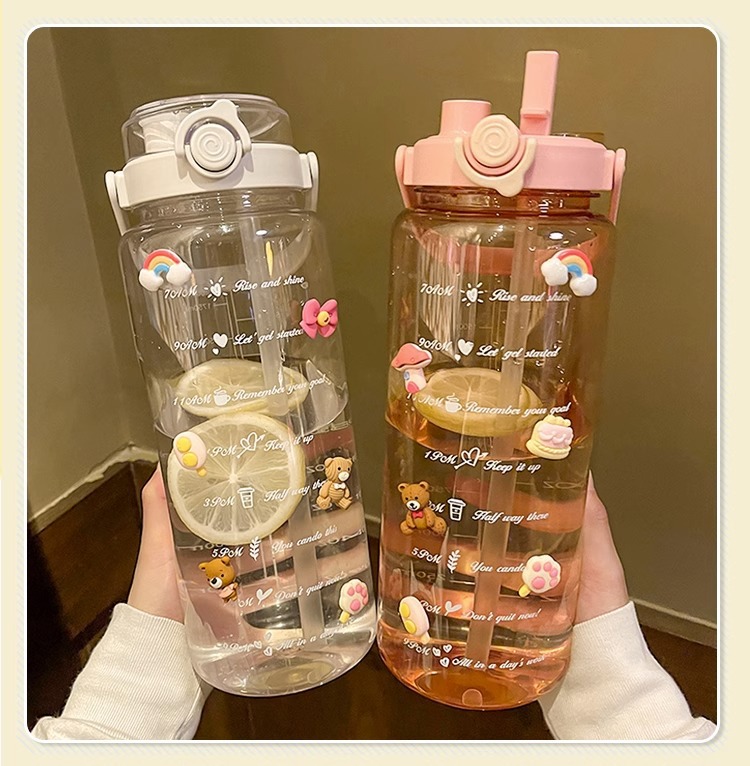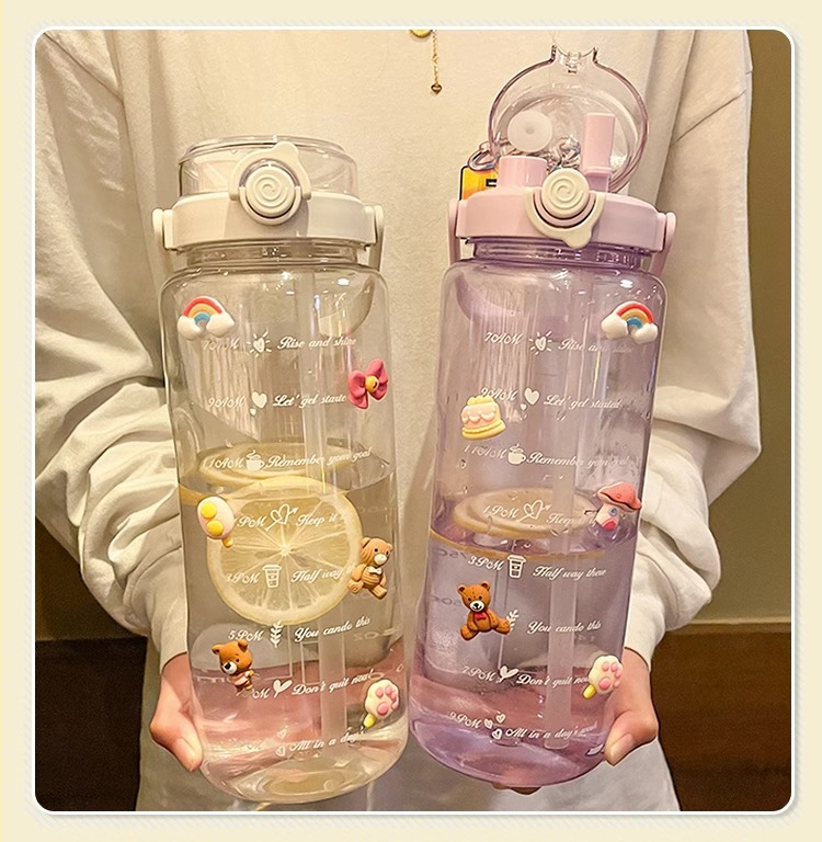 Verano de gran capacidad deportes hervidor transparente al aire libre de alto aspecto portátil taza de agua taza de plástico con paja doble taza de beber