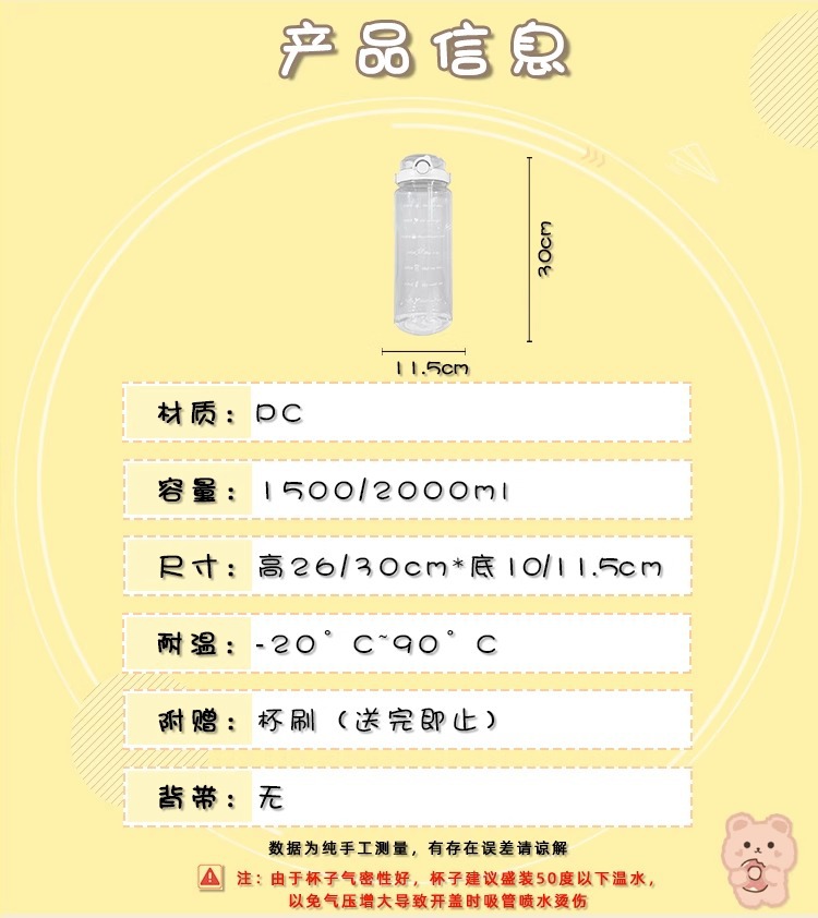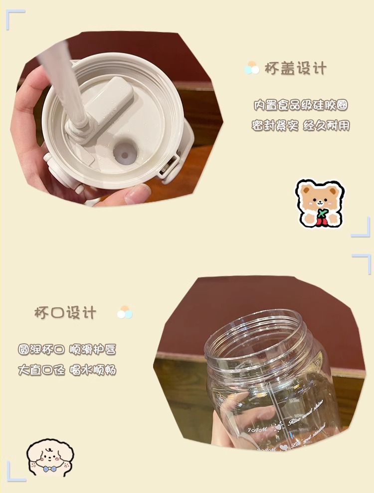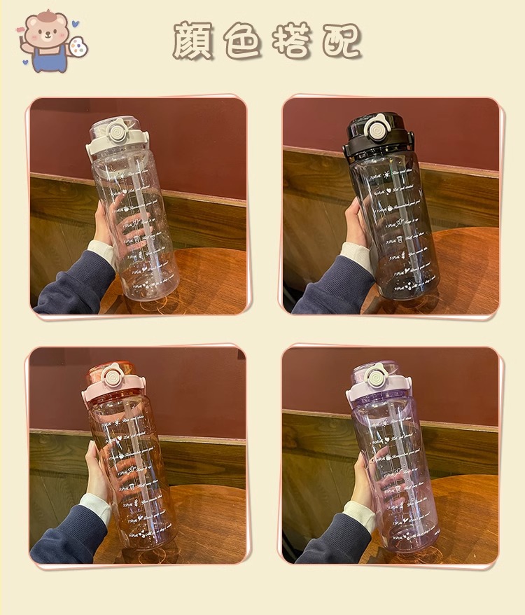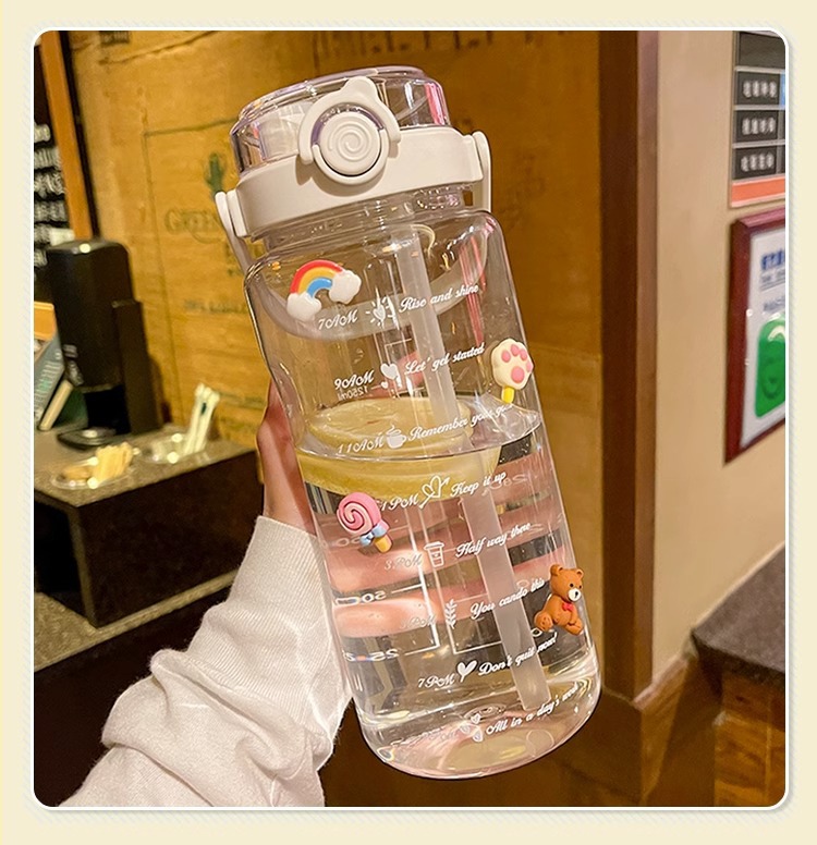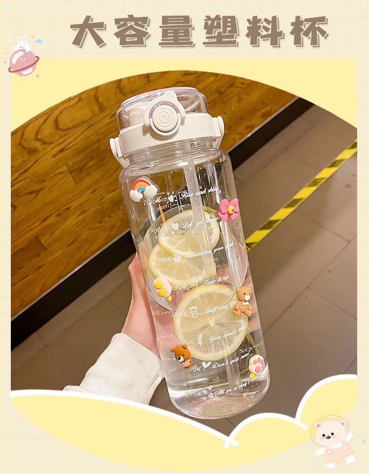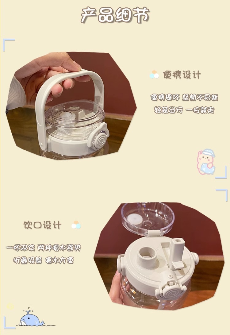Verano de gran capacidad deportes hervidor transparente al aire libre de alto aspecto portátil taza de agua taza de plástico con paja doble taza de beber