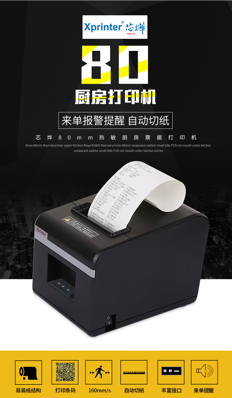 Xinye XP-A160H/N160II caja registradora de recibos impresora térmica 80mm catering cocina malla
