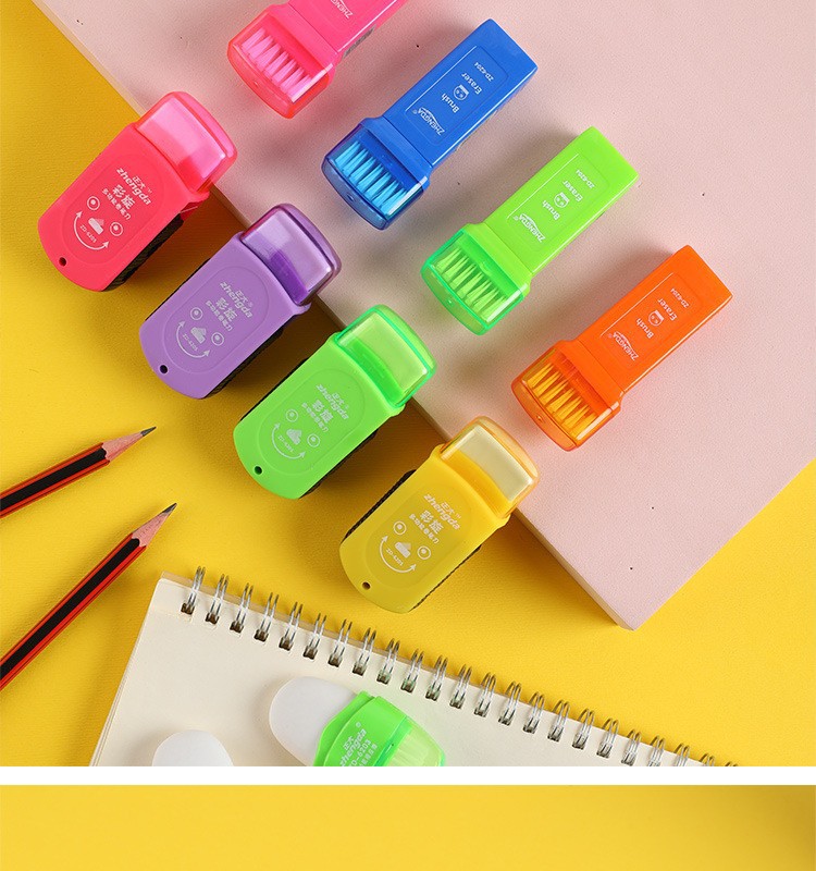 Ahorro de trabajo limpio y colorido borrador para niños Sacapuntas de lápiz creativo borrador cepillo dos en uno suministros de papelería para estudiantes