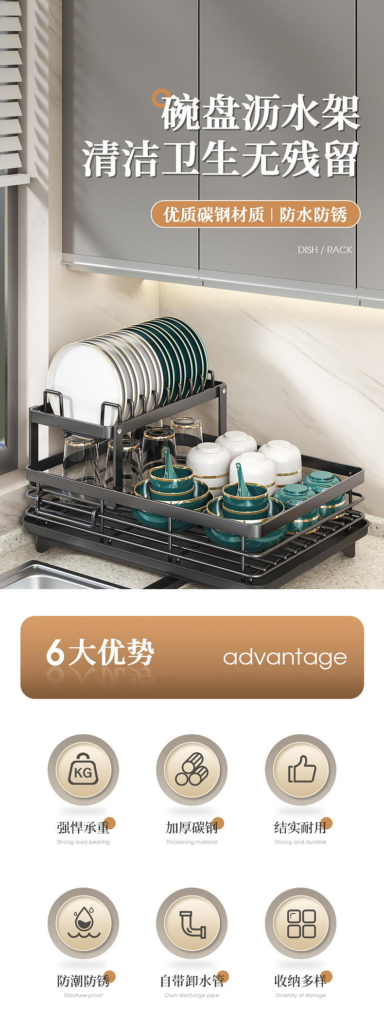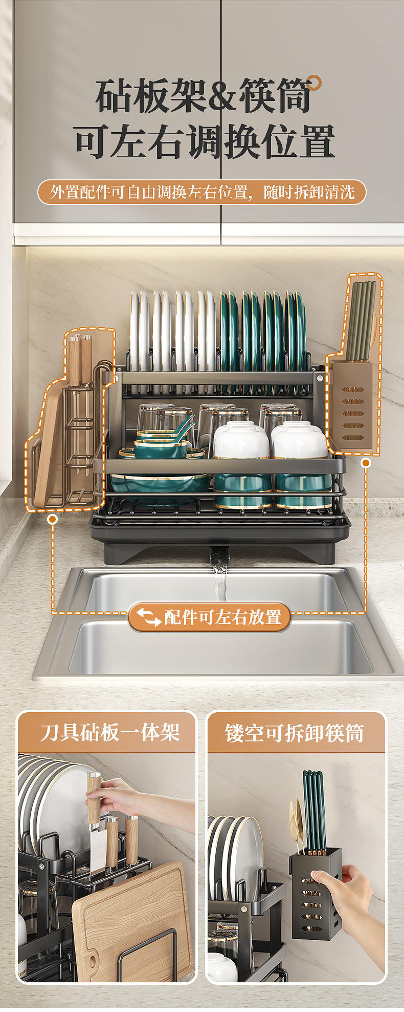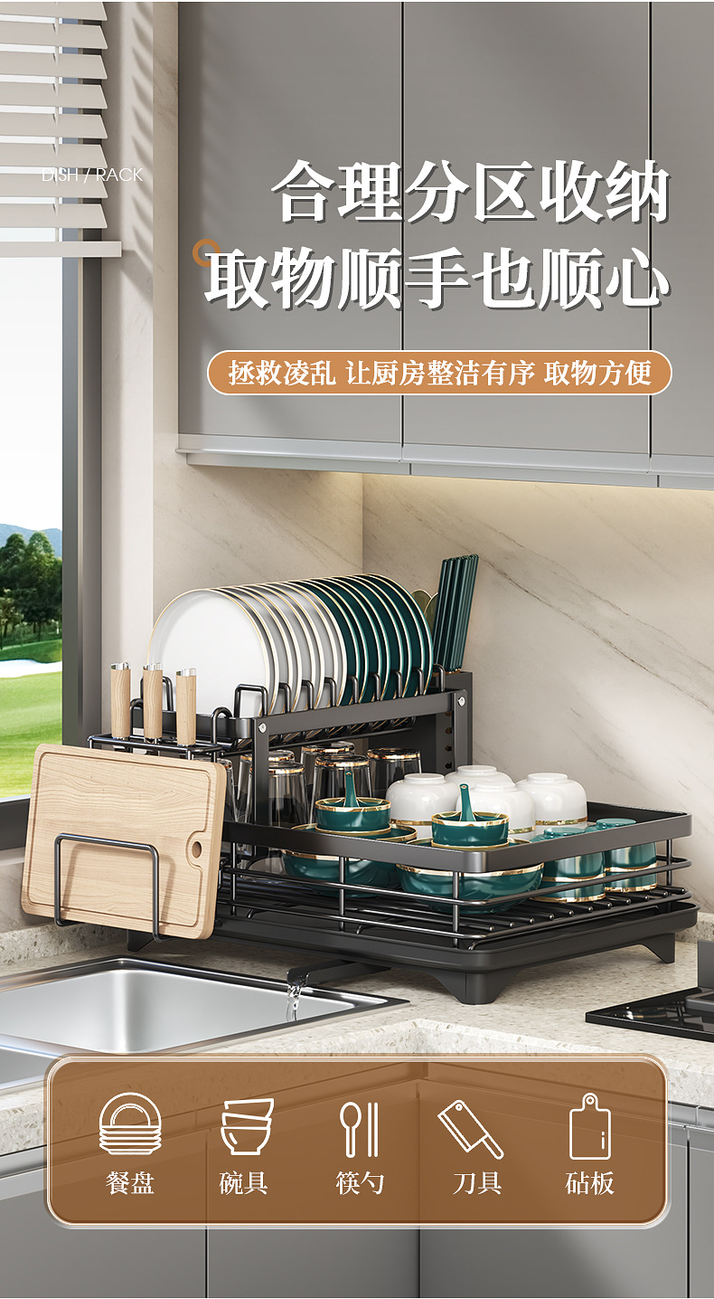 Cocina plato rack fregadero vajilla almacenamiento rack hogar multi-funcional palillos drenaje rack armario