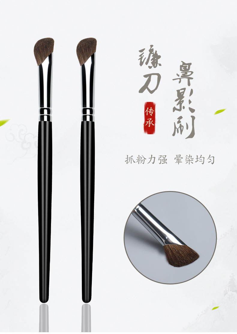 Cepillo de sombra de nariz falciforme pequeño pelo de caballo oblicuo reparación de la cabeza Cepillo Raíz de montaña ala de nariz floreciente cepillo de sombra de ojos cepillo de maquillaje animal pelo suave