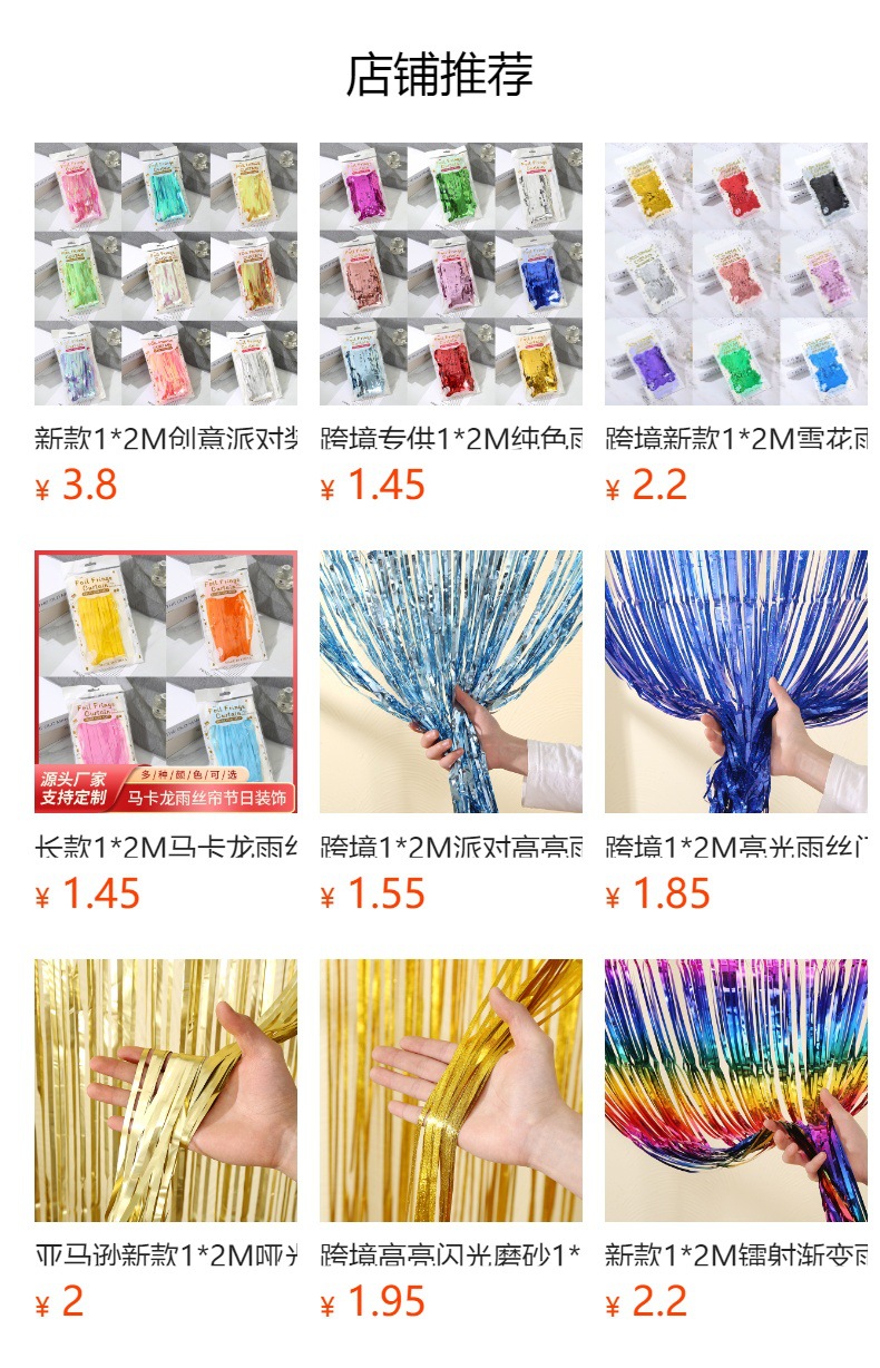 Exclusividad transfronteriza 1*2M cortina de seda de lluvia de color sólido decoración de cumpleaños suministros de decoración de fiesta accesorios de decoración de pared de escenario