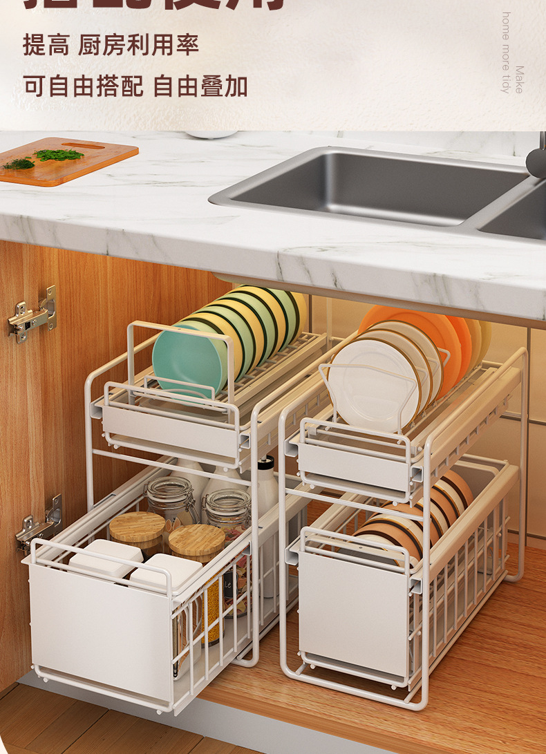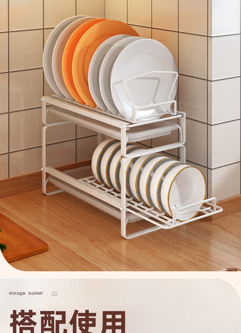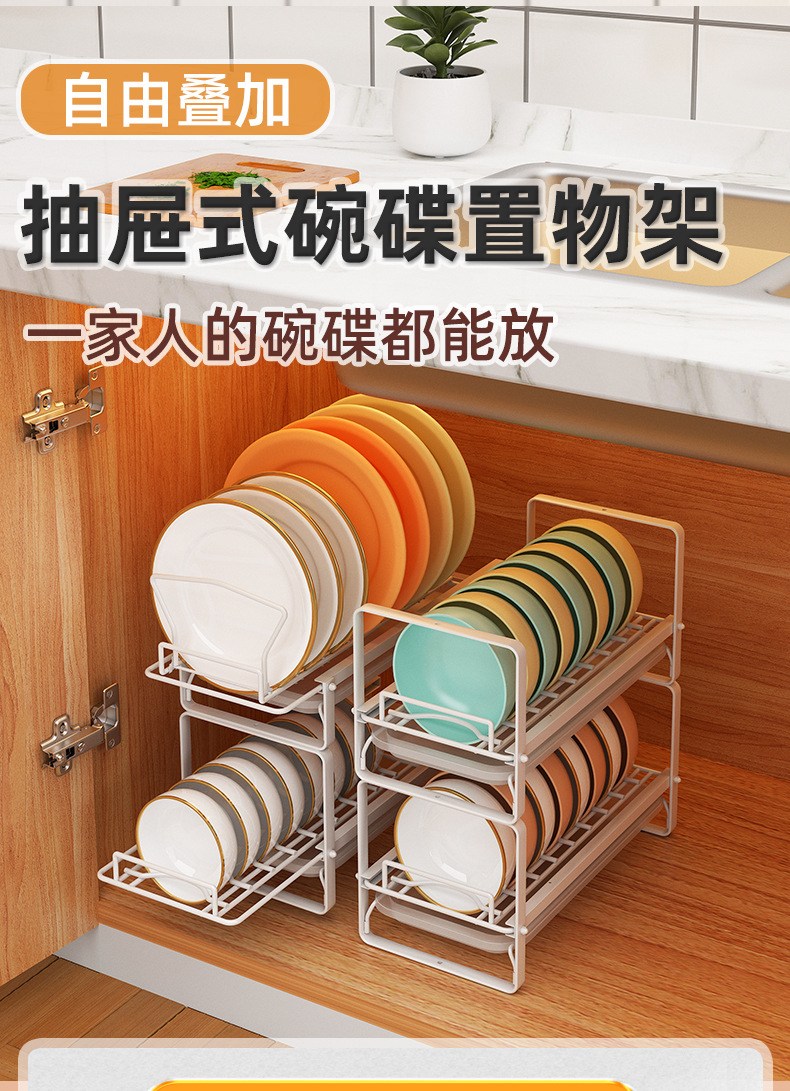 Plato de cocina rack de almacenamiento gabinete Plato de drenaje rack de una sola capa fregadero extraíble estante de almacenamiento apilable