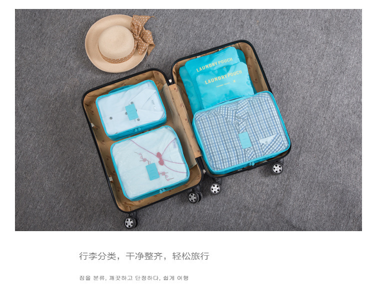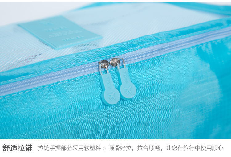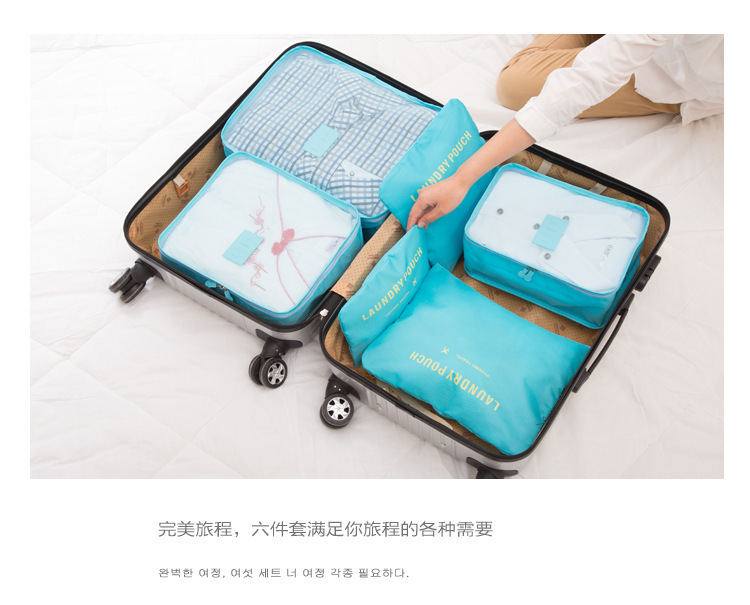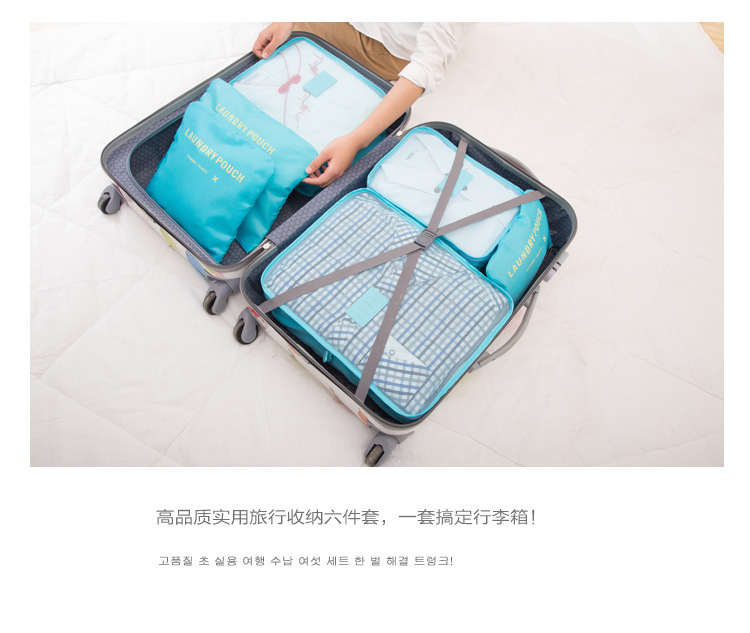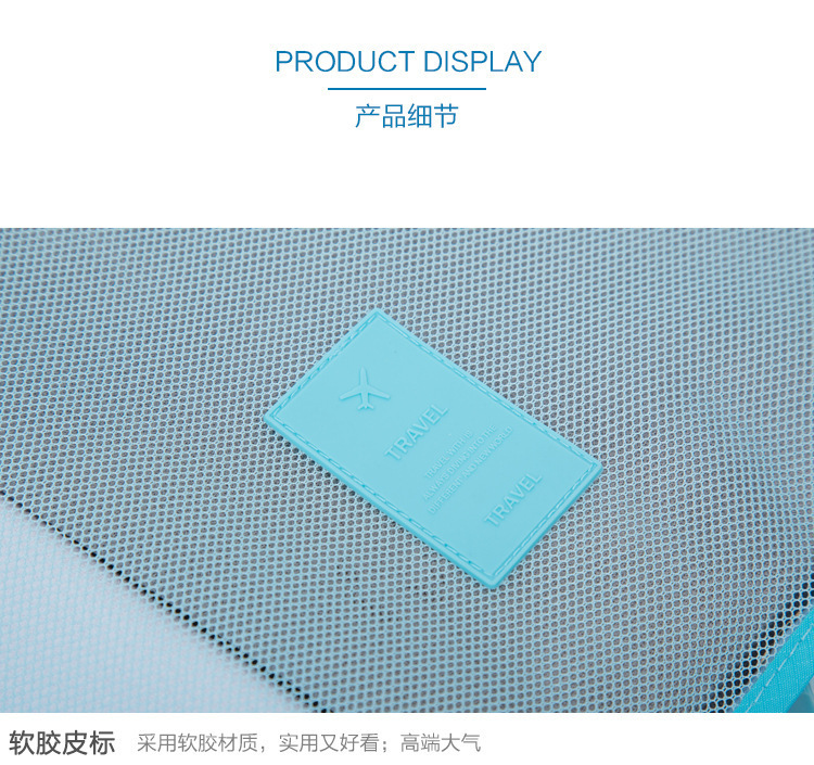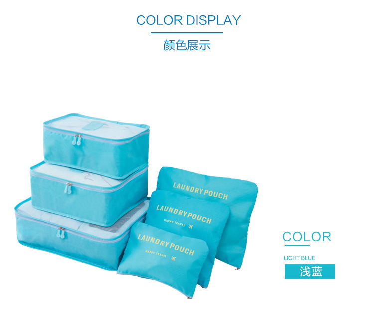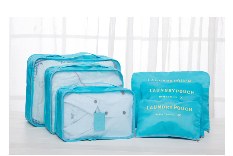 Juego de seis piezas de bolsa de almacenamiento de viaje azul cielo (cuadrícula de cuatro puntos)