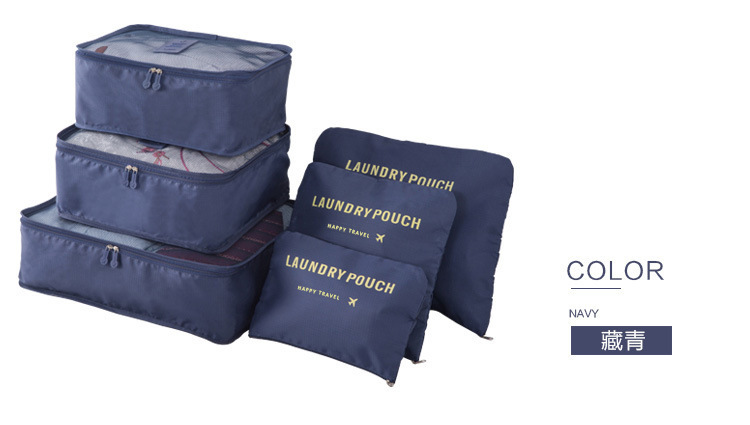 Juego de seis piezas de bolsa de almacenamiento de viaje azul marino (cuadrícula de cuatro puntos)