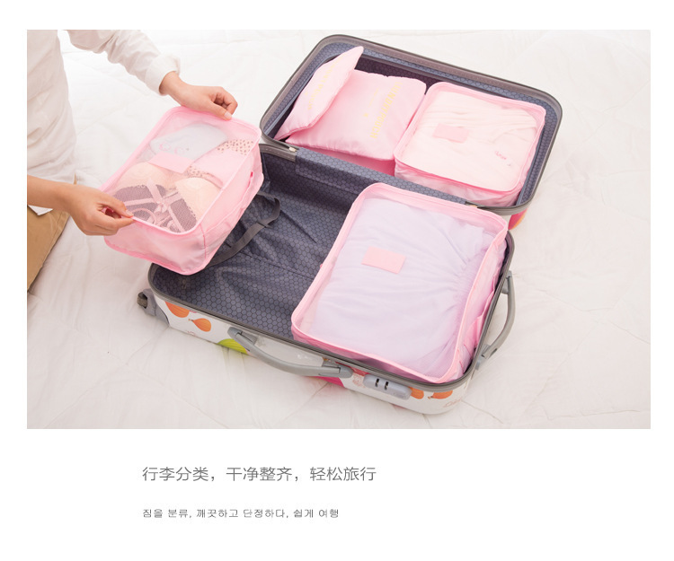 Bolsa de almacenamiento de viaje rosa de seis piezas (cuadrícula de cuatro puntos)