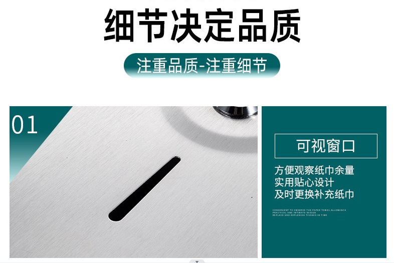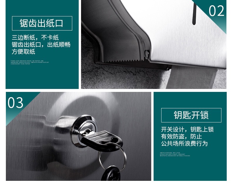 Acero inoxidable 304 bandeja de toallas de mano gran caja de papel de rollo de hoteles baños públicos caja de toallas impermeable