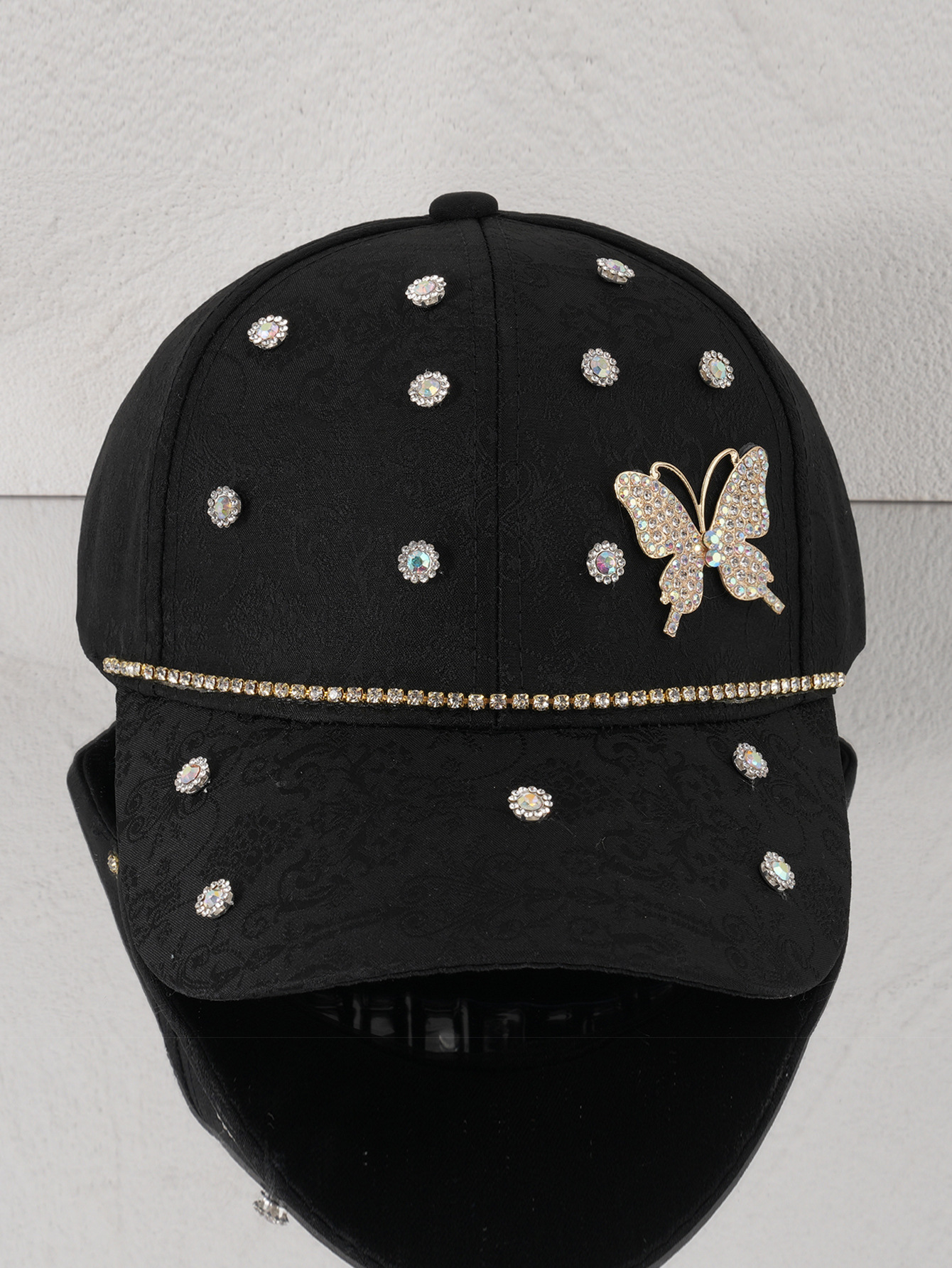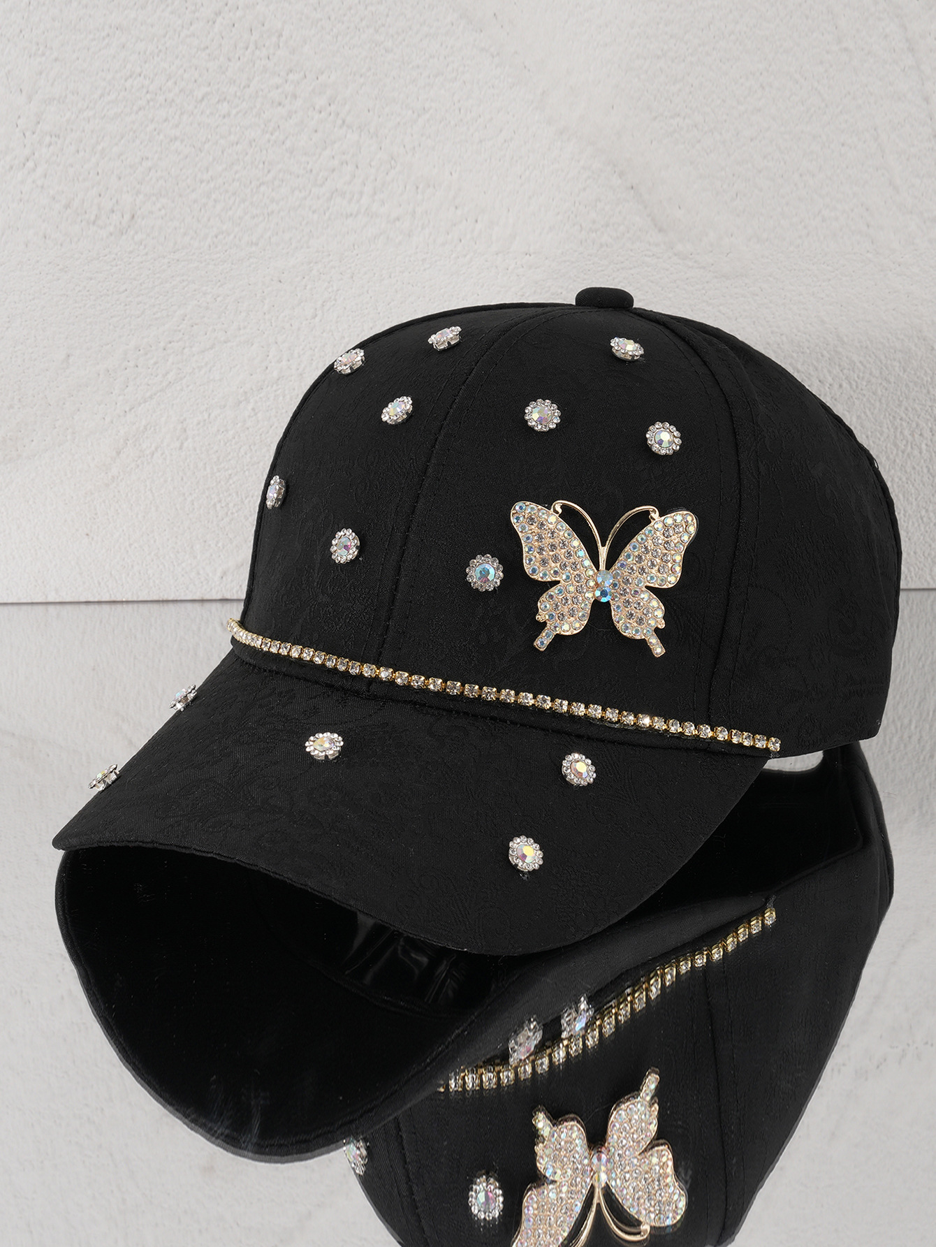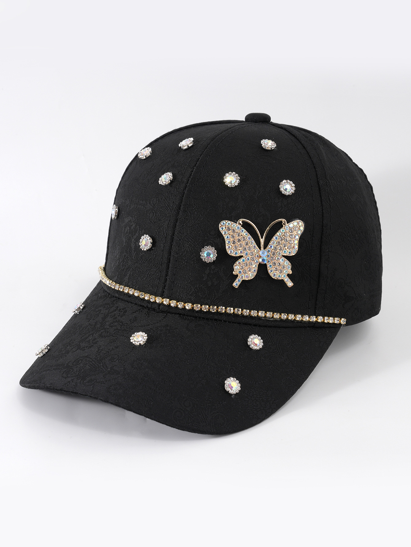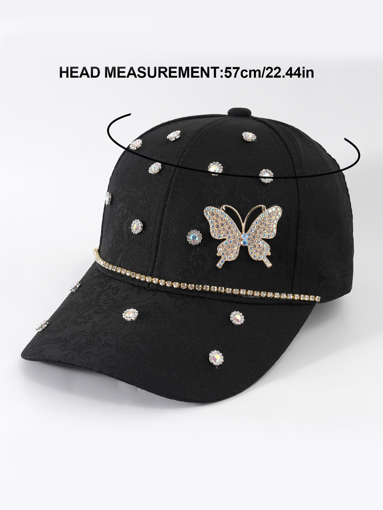 Hombres y mujeres pareja sombrero de béisbol hecho a mano con diamantes lindos mariposa flash flor accesorios de gemas de moda callejera citas