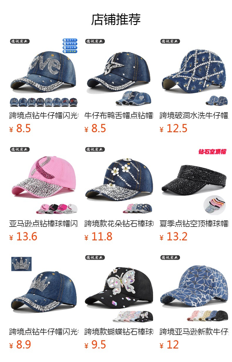 Sombreras de béisbol de diamantes transfronterizas sombreros de pato coronados sombreros de estilo de personalidad de pareja sombreros sombreros de sombreros de sol