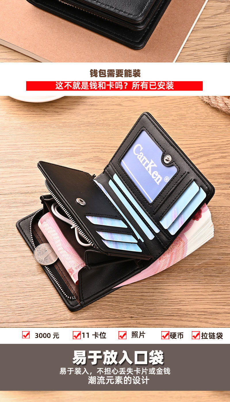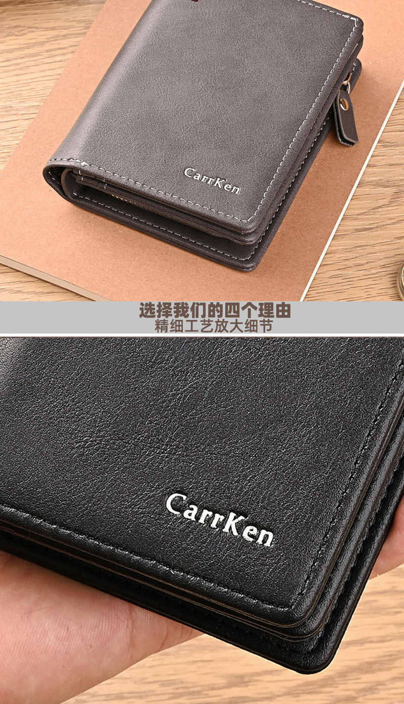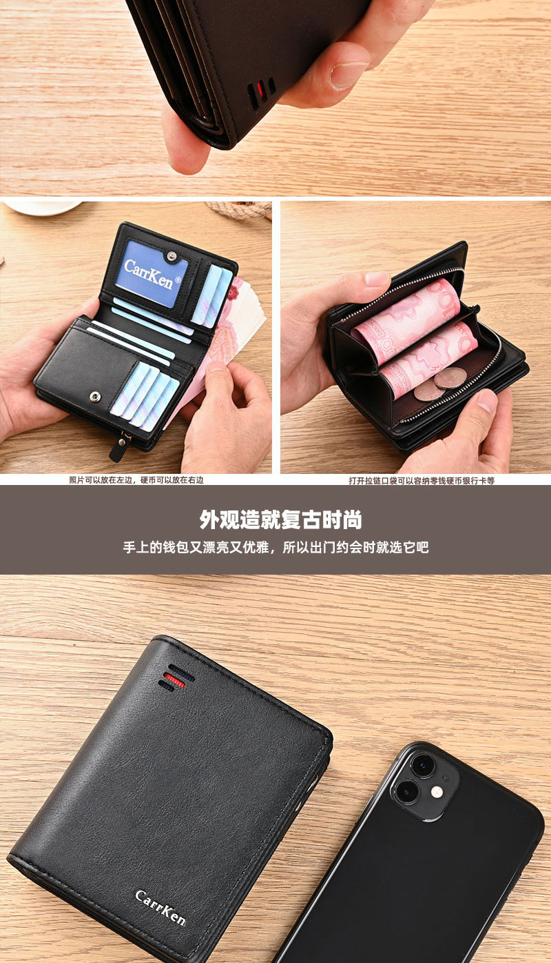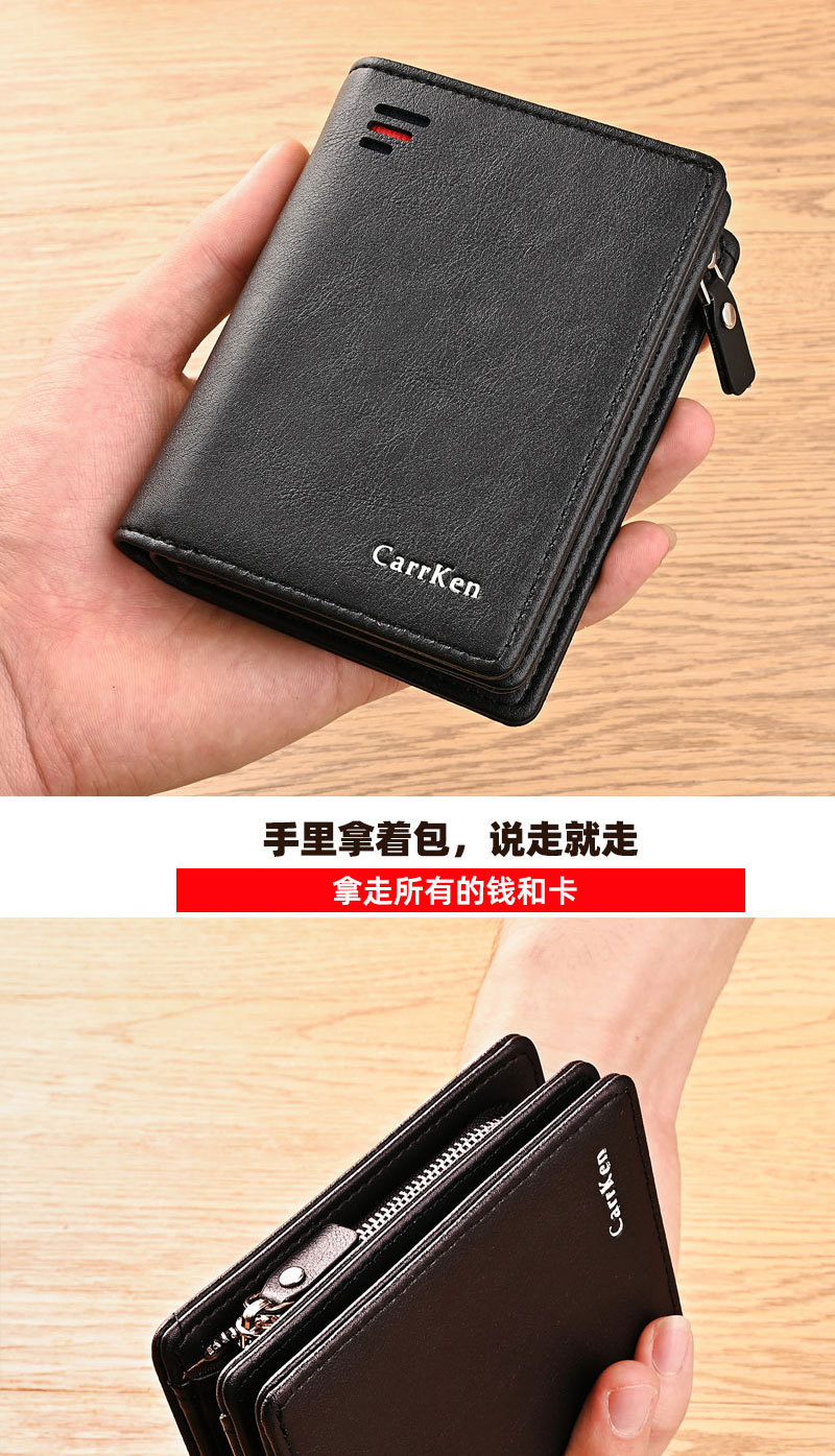 Cartera corta para hombre con cremallera, anti-desmagnetización