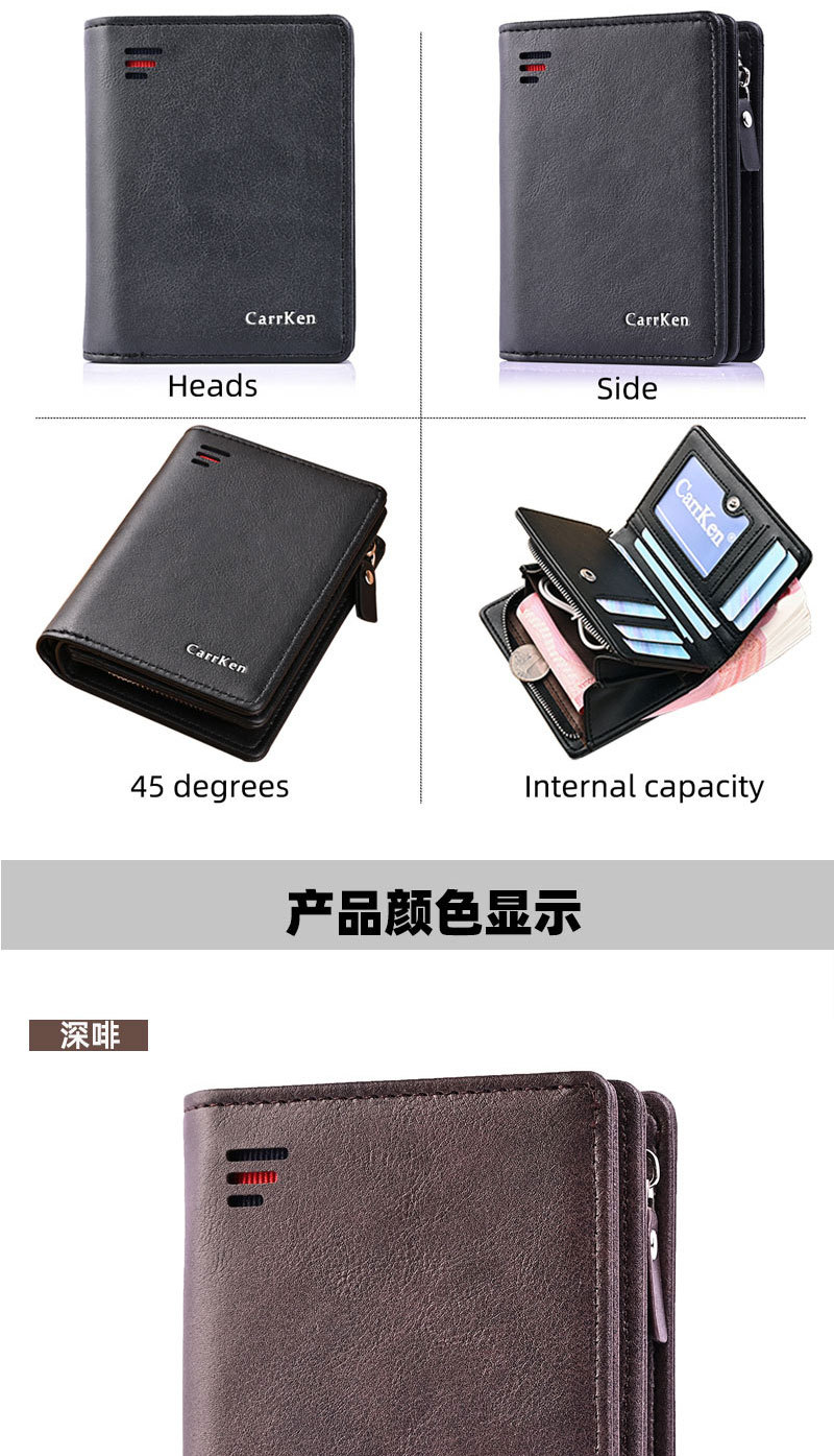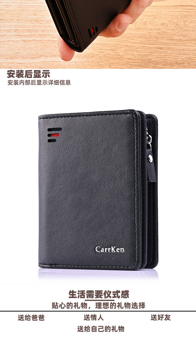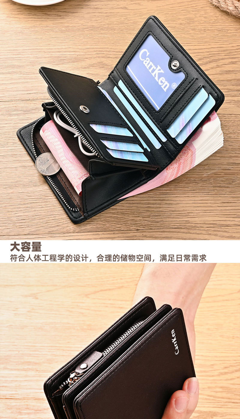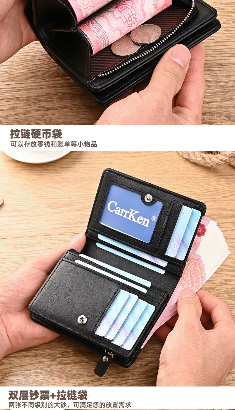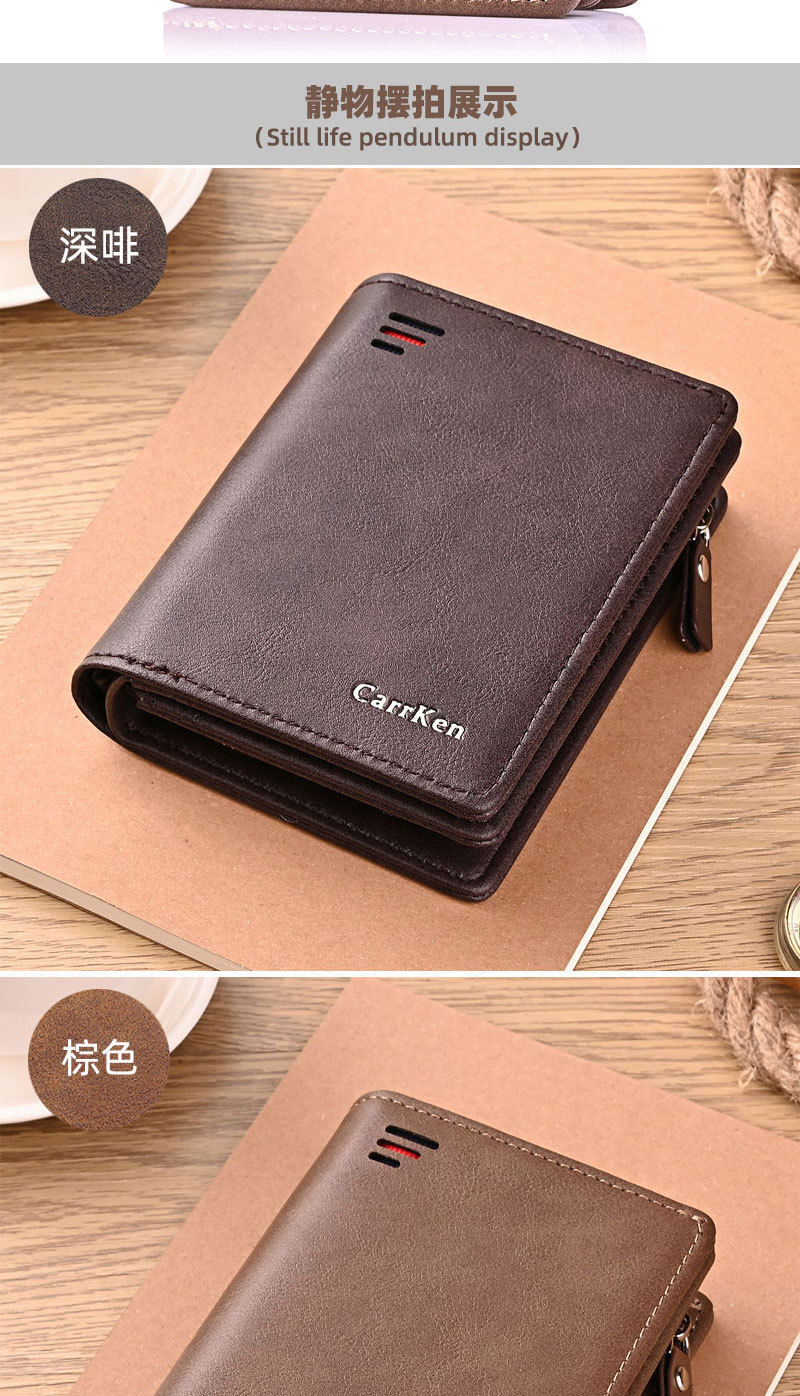 Cartera corta para hombre con cremallera, anti-desmagnetización