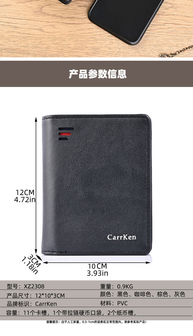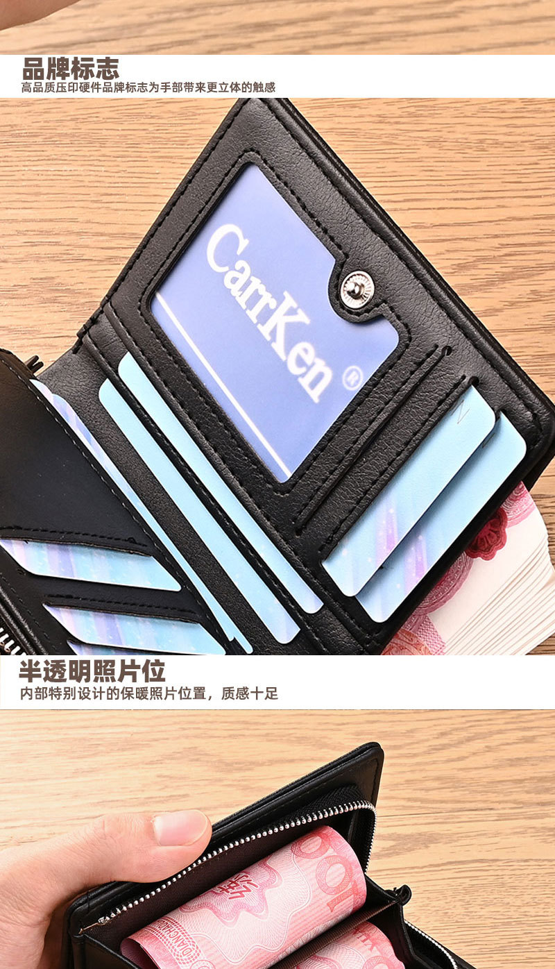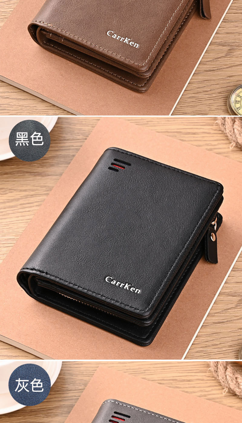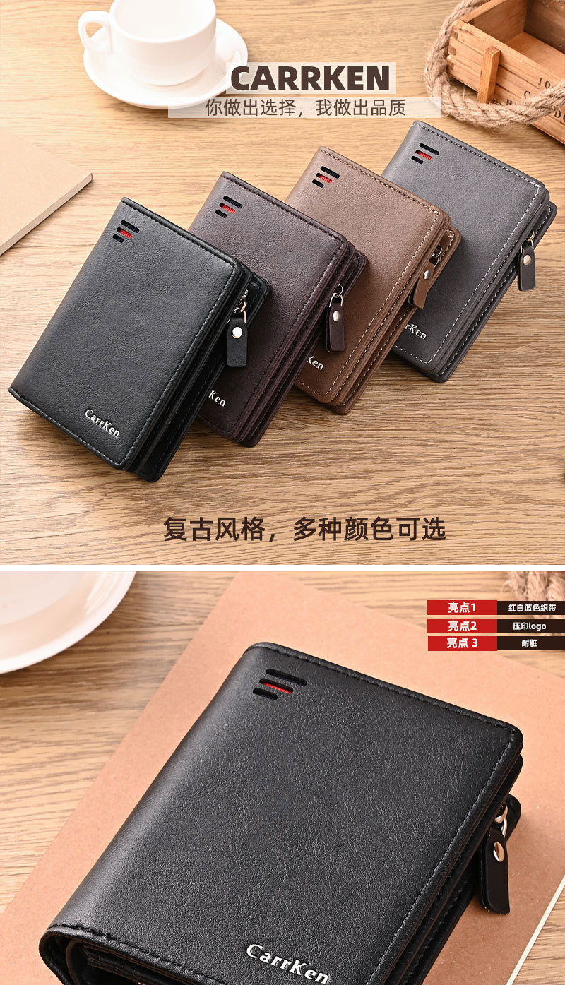 Cartera corta para hombre con cremallera, anti-desmagnetización