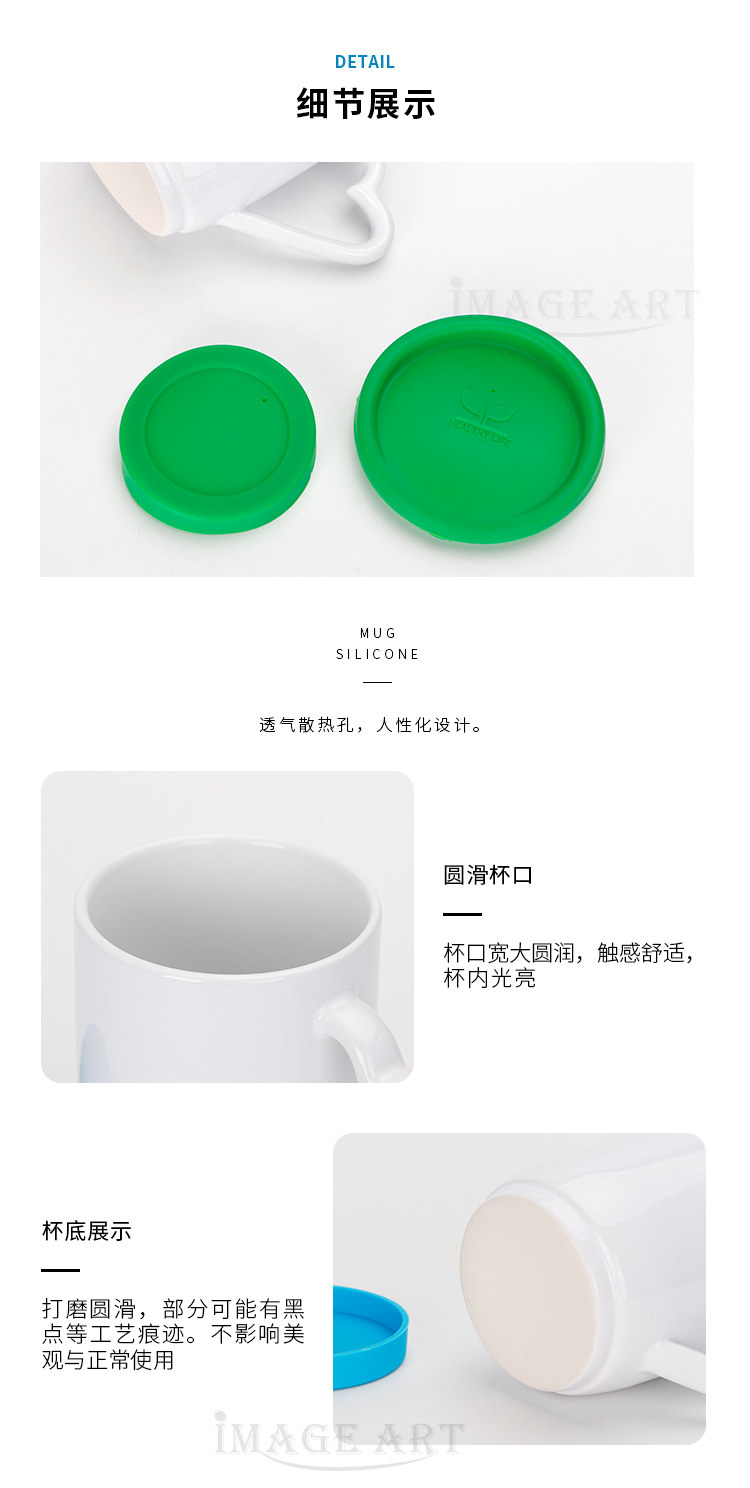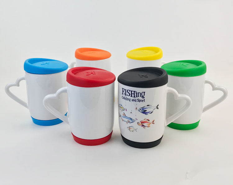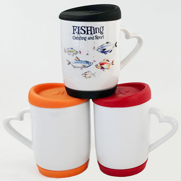 Taza blanca de transferencia de calor Taza con tapa de silicona Diy Taza de impresión personalizada Taza publicitaria Taza de cerámica en blanco