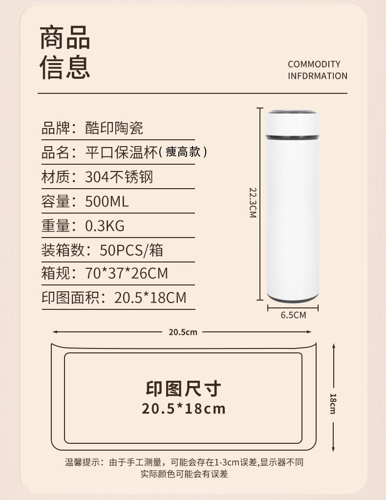 Taza de aislamiento de transferencia de calor Taza de té de acero inoxidable 304 de boca plana Taza de publicidad de recubrimiento en blanco de bricolaje al por mayor