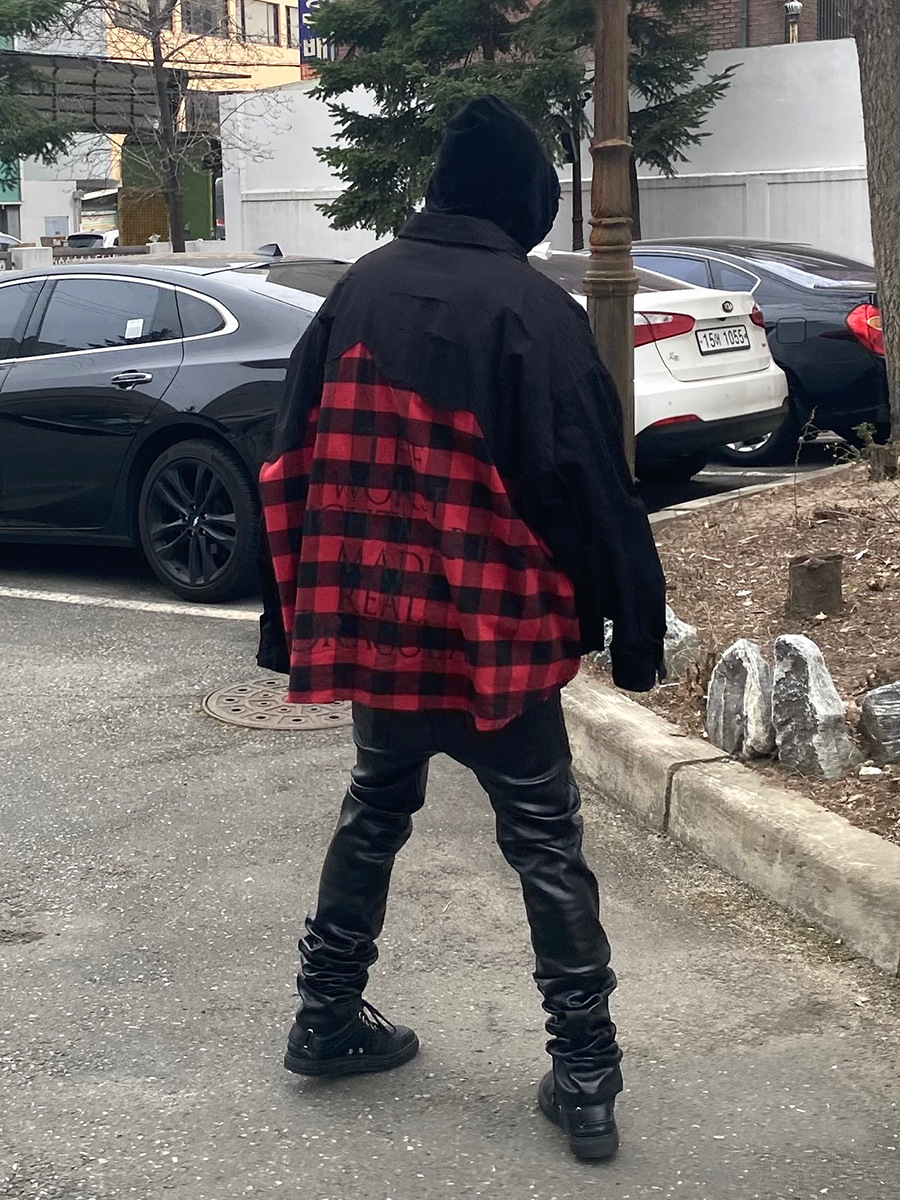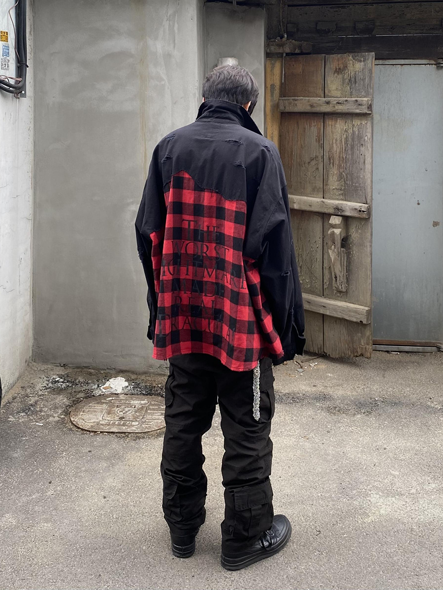 Undermycar Otoño e Invierno angustiado industria pesada desgastada costura camisa a cuadros retro hombres y mujeres misma camisa suelta