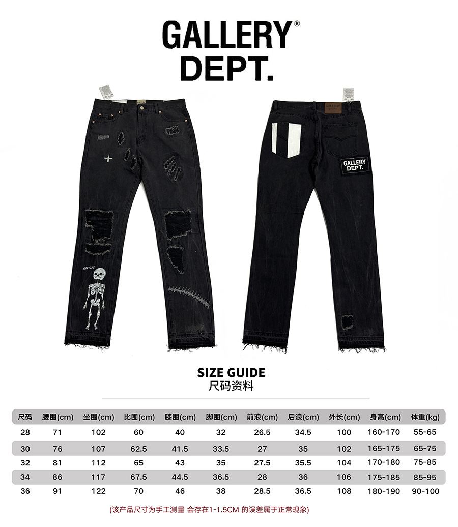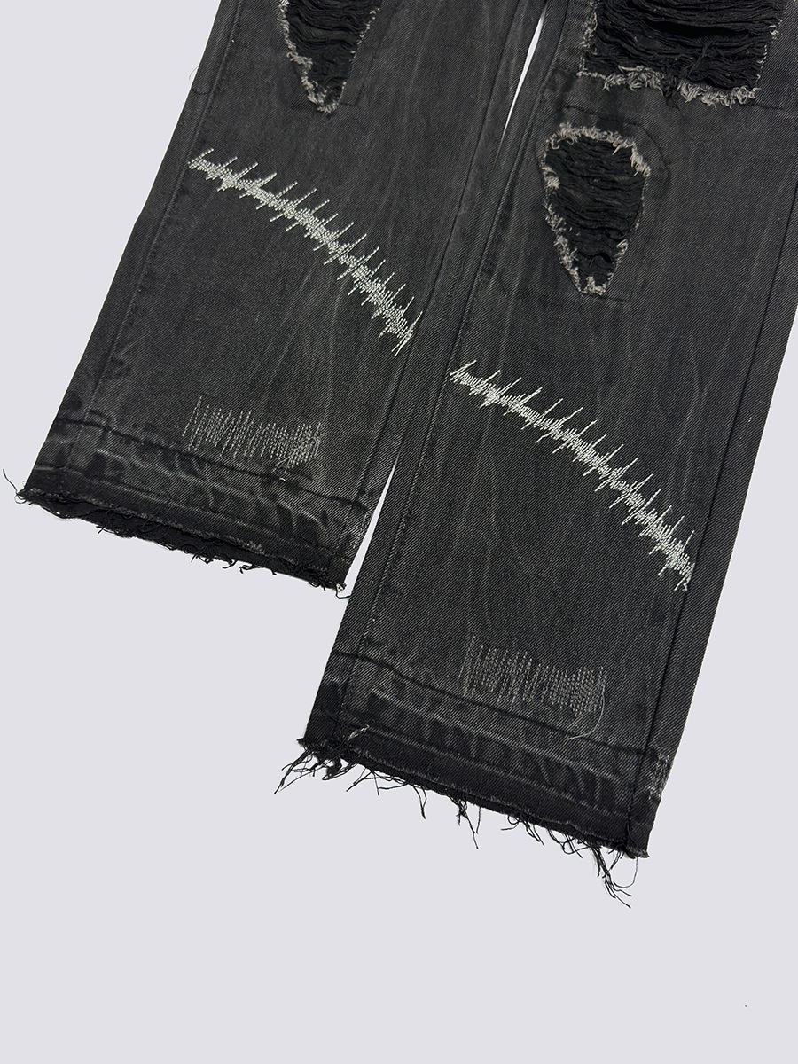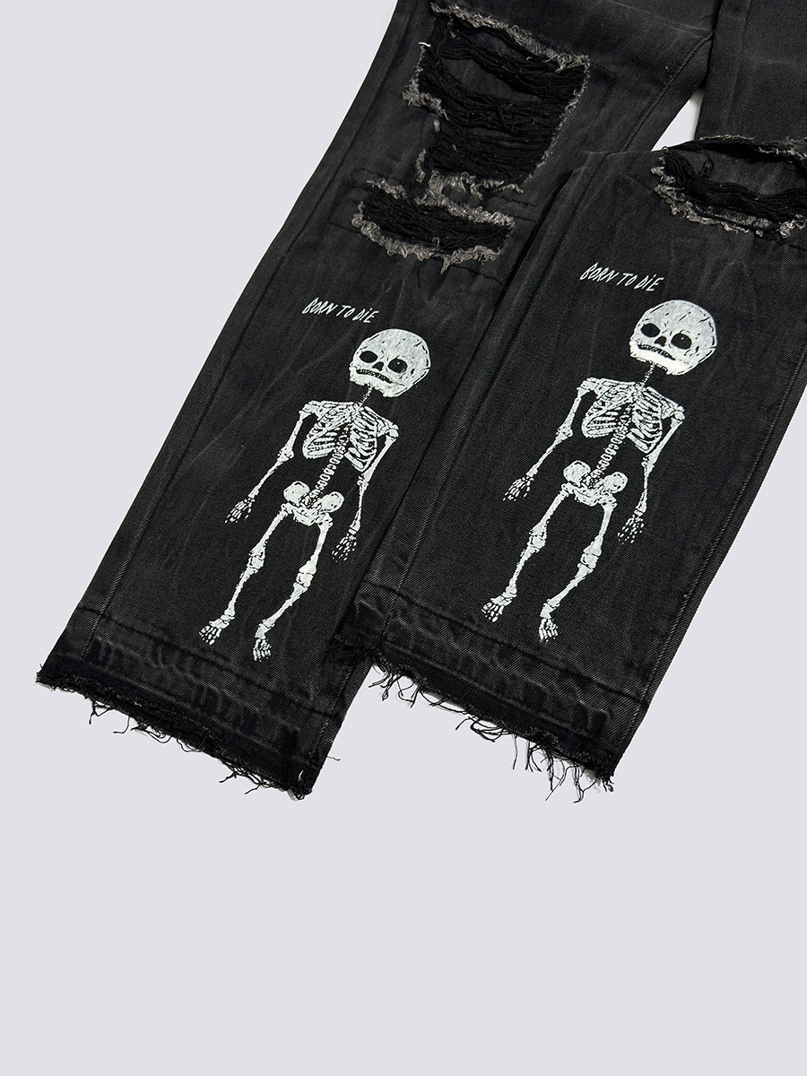 Galería de Dep. Skull costurado a mano pegado desgastado para hacer jeans viejos