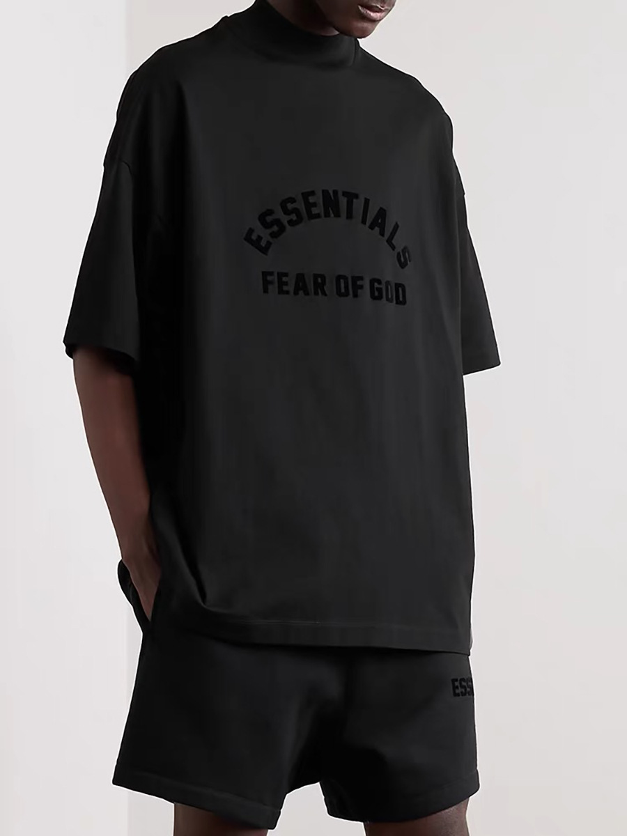 FOG ESSENTIALS WANG Jiaer mismo estilo pequeño cuello alto ancho fuerte hombres sueltos de manga corta pareja camiseta casual