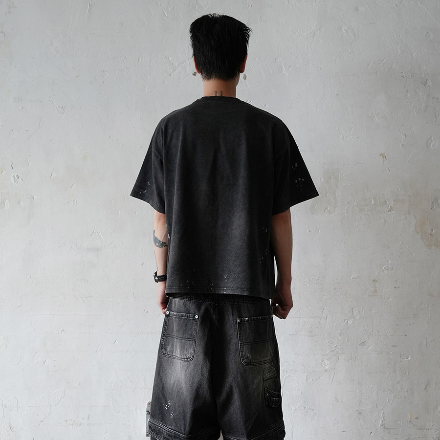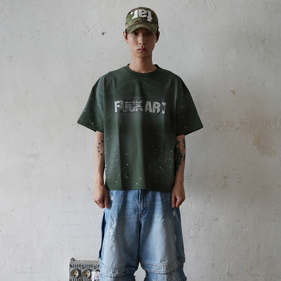 ARCHIVO FAR FA letras pintadas a mano con tinta lavada para hacer viejas camisetas de manga corta de alta marca americana para hombres