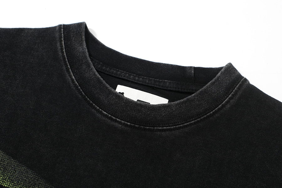 Nicho de marca PANQ lavado con agua para hacer vieja impresión de logotipo borroso verano versátil nuevo hombre y mujer camiseta de manga corta suelta
