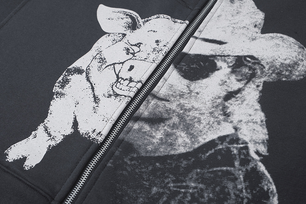 Melancholy ricos de segunda generación ERD ilustraciones de piggyback con cremallera Cardigan vintage suéter suelto con capuz