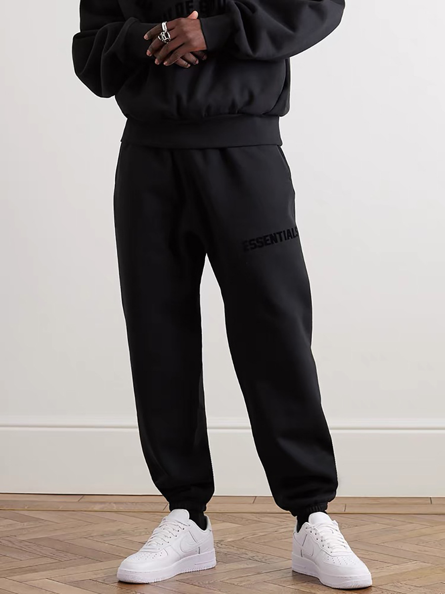 Alta versión ESSENTIALS FOG marca nueva serie carta de impresión forrada de lana de los hombres deportes pantalones casuales con cordón