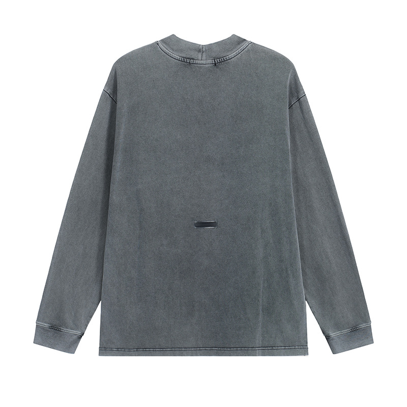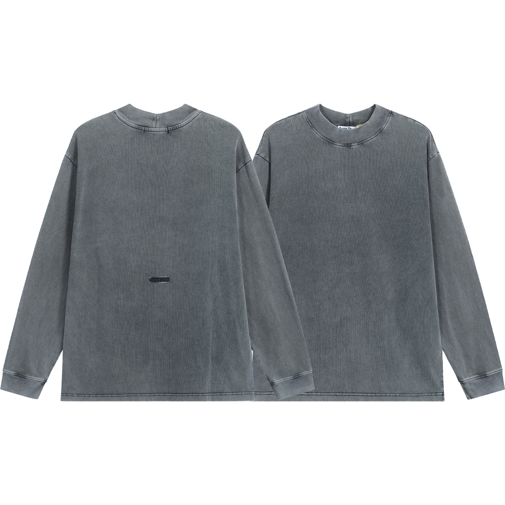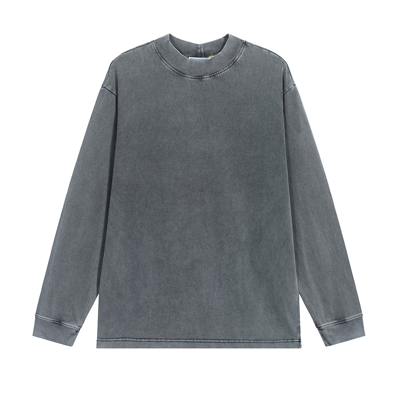 AC lavado y desgastado manga larga calle alta retro color sólido simple suelta casual todo fósforo cuello redondo camisa de fondo camiseta hombres y mujeres