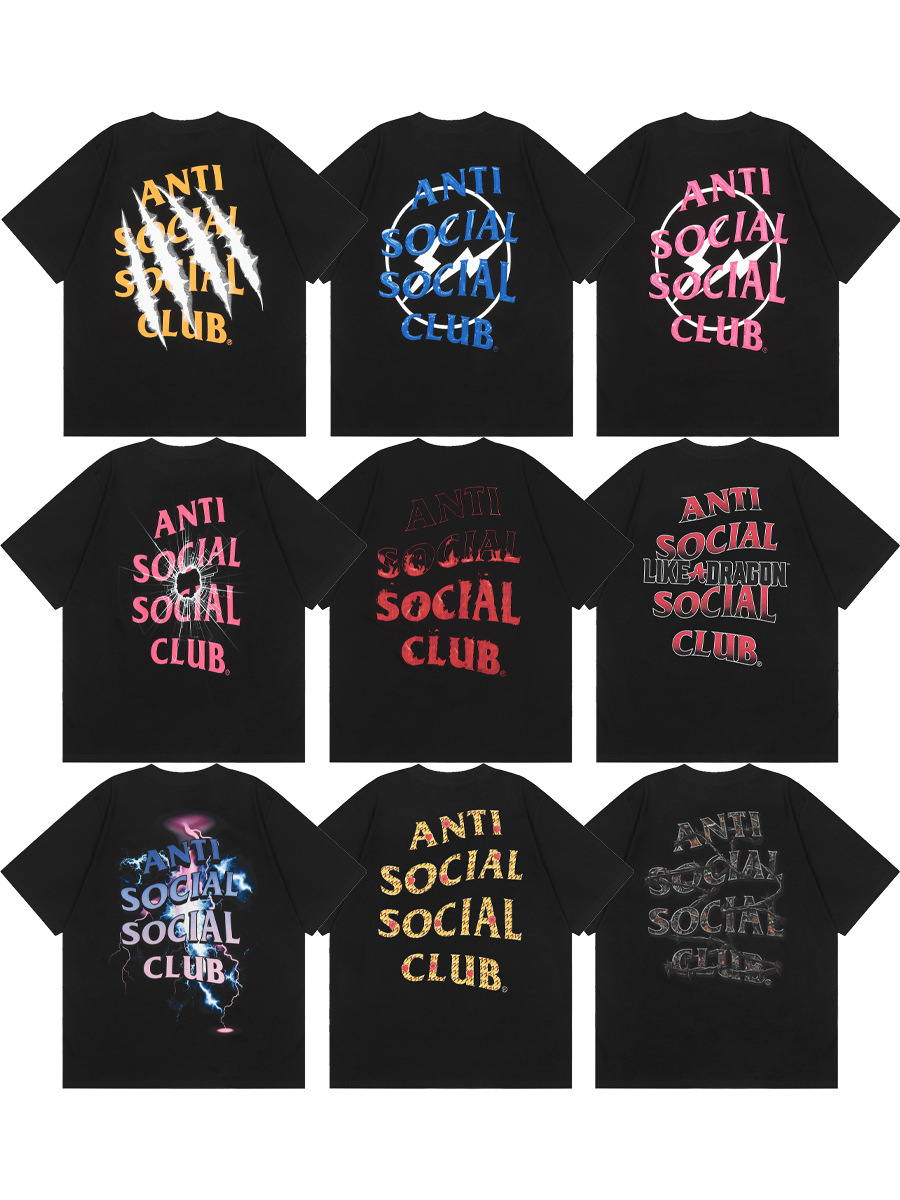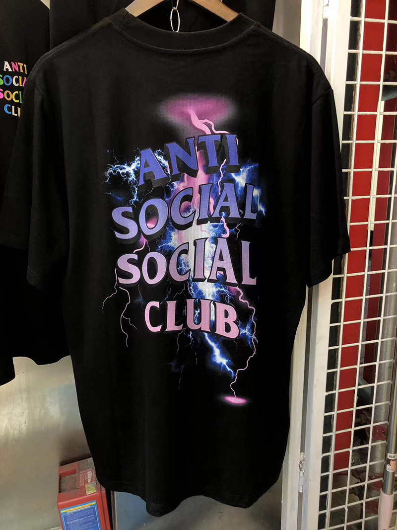 Versión correcta ASSC Club de dibujos animados relámpago impresión conjunta cuello redondo de los hombres Jersey pareja manga corta Camiseta moda